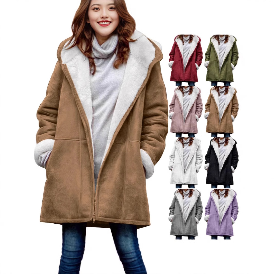 2024年アマゾンクロスボーダーの新型欧米のカジュアルなゆったりとしたベルベットは秋冬の純色の中の長いコートの女性を厚くした