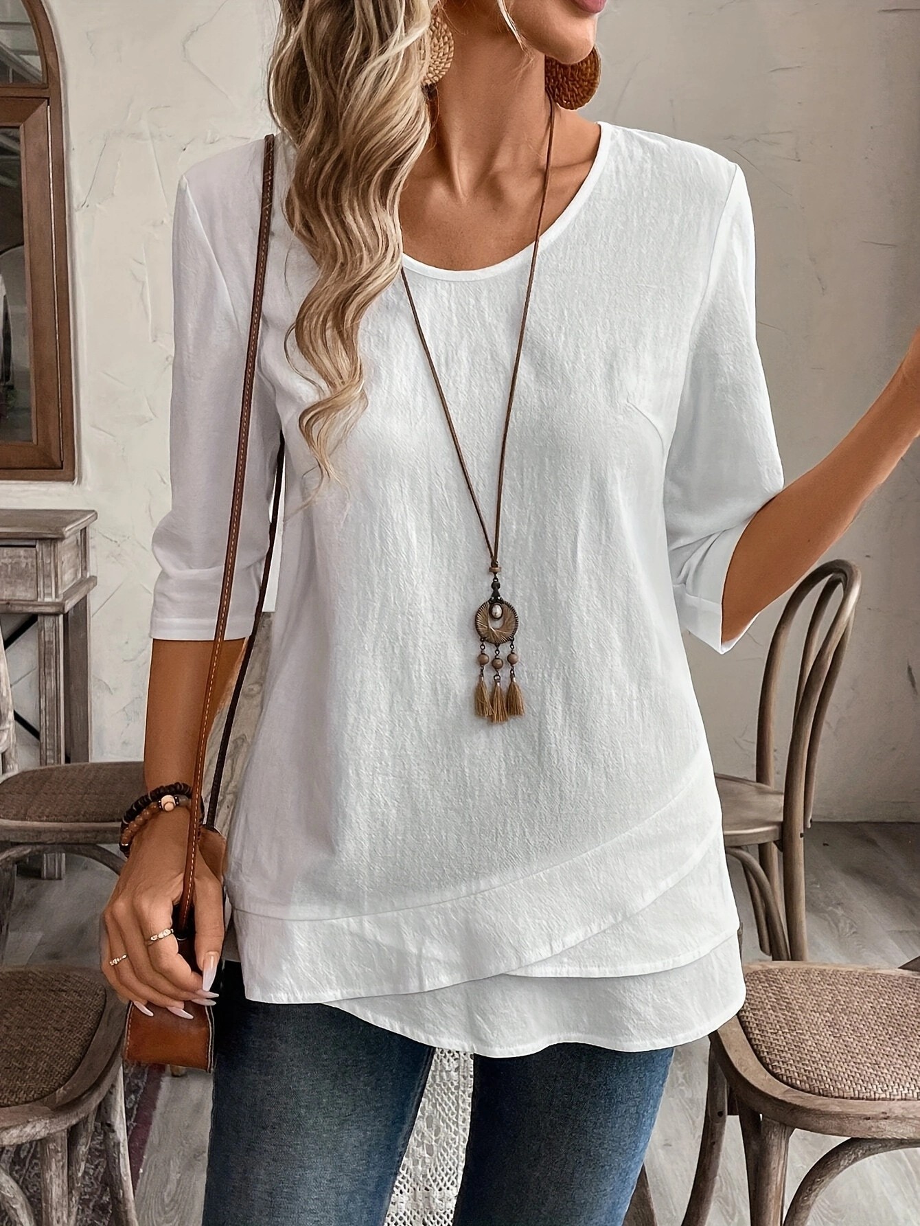 2025 クラッシュレディース夏半袖無地スクエアネック胸クロスストラップ半袖カジュアル Tシャツ