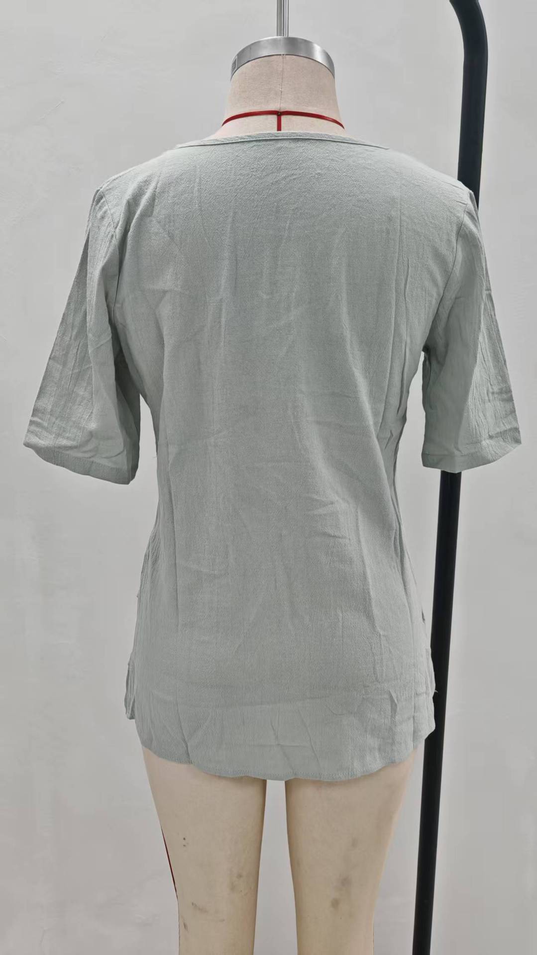 2025 ヨーロッパとアメリカの貿易クロスボーダー婦人服アマゾン人気の V ネックフライングスリーブカジュアル半袖無地シャツ