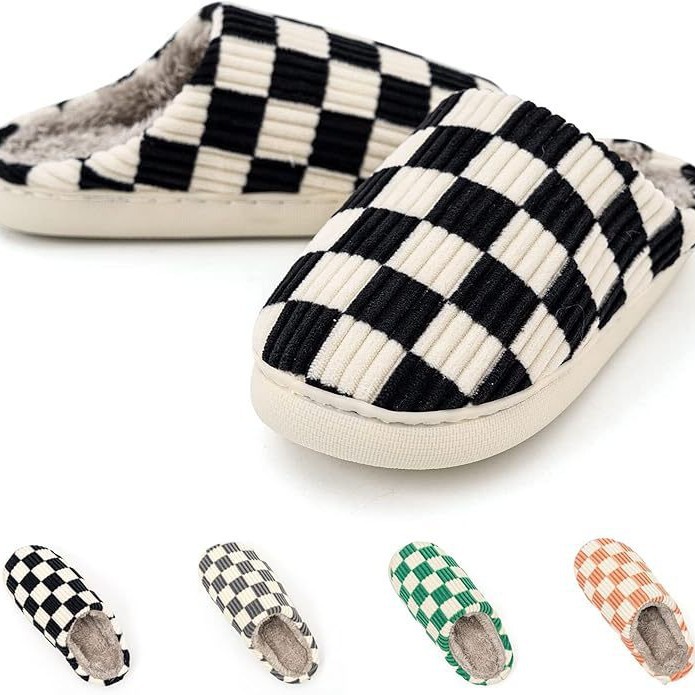 アマゾンのネットの赤い爆発のチェス盤の格の綿のスリッパの現物の滑り止めの厚い家の経典の格子の卸売りの綿の靴