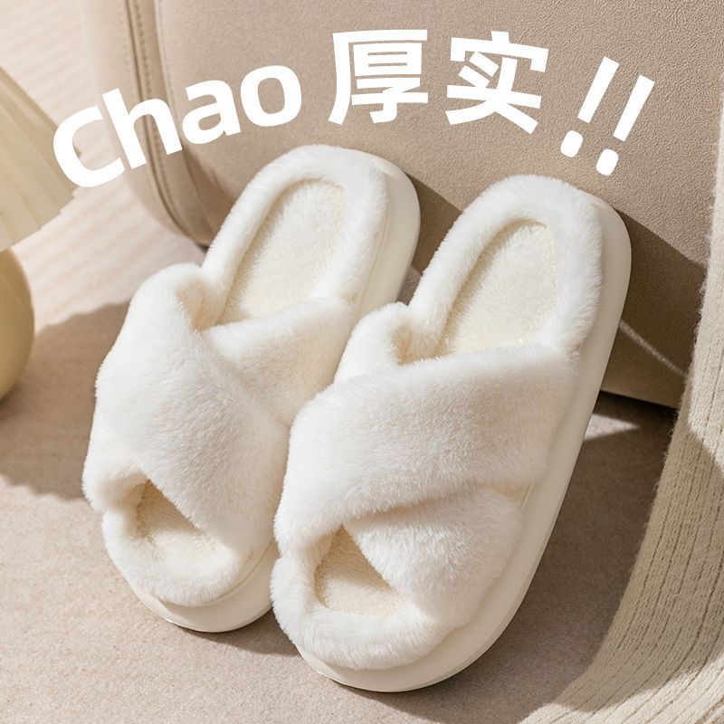 新款简约毛毛小清新拖鞋交叉高级感甜美设计感时尚踩屎感棉拖鞋