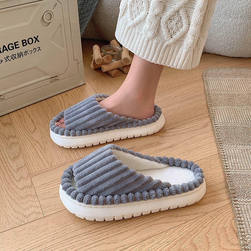 撸猫感棉拖鞋女士秋冬毛绒露趾家居室内软底透气产后月子拖鞋女冬