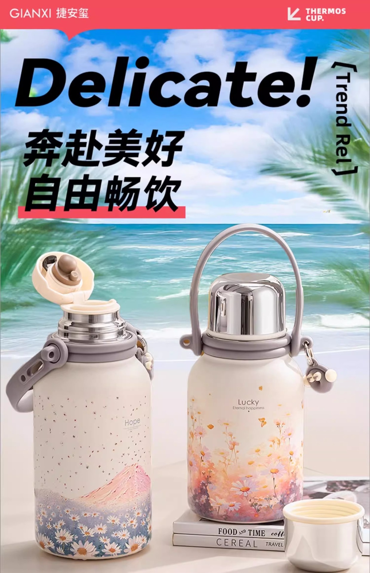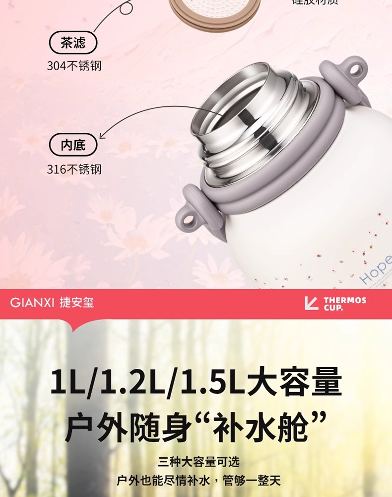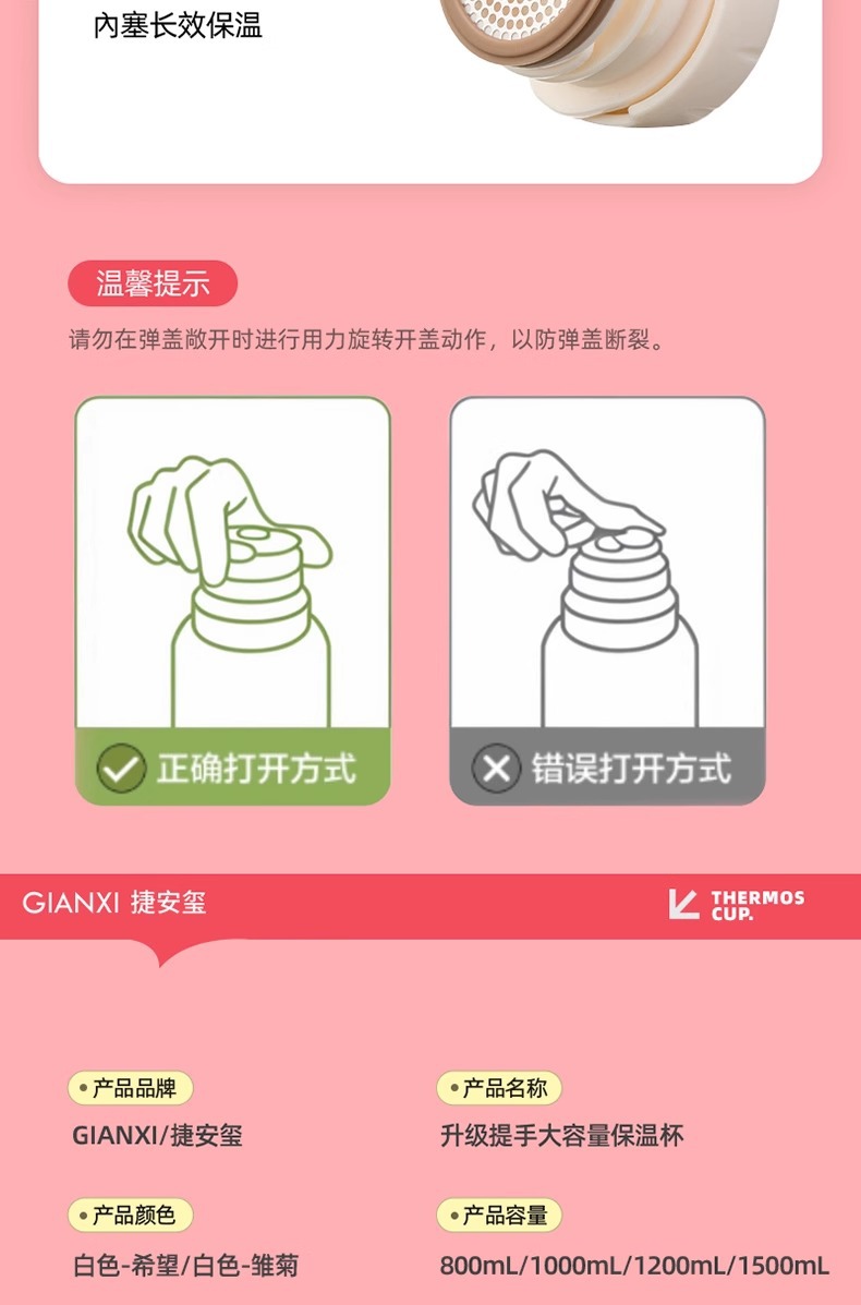ハンドル付きの大容量魔法瓶カップをアップグレード