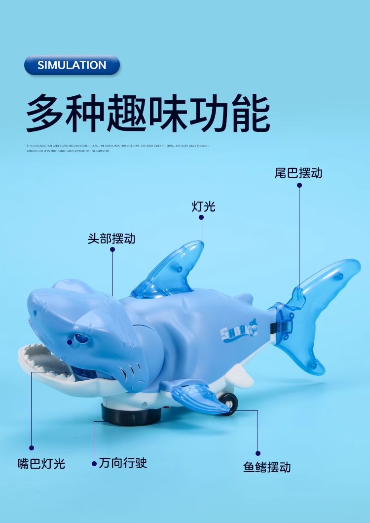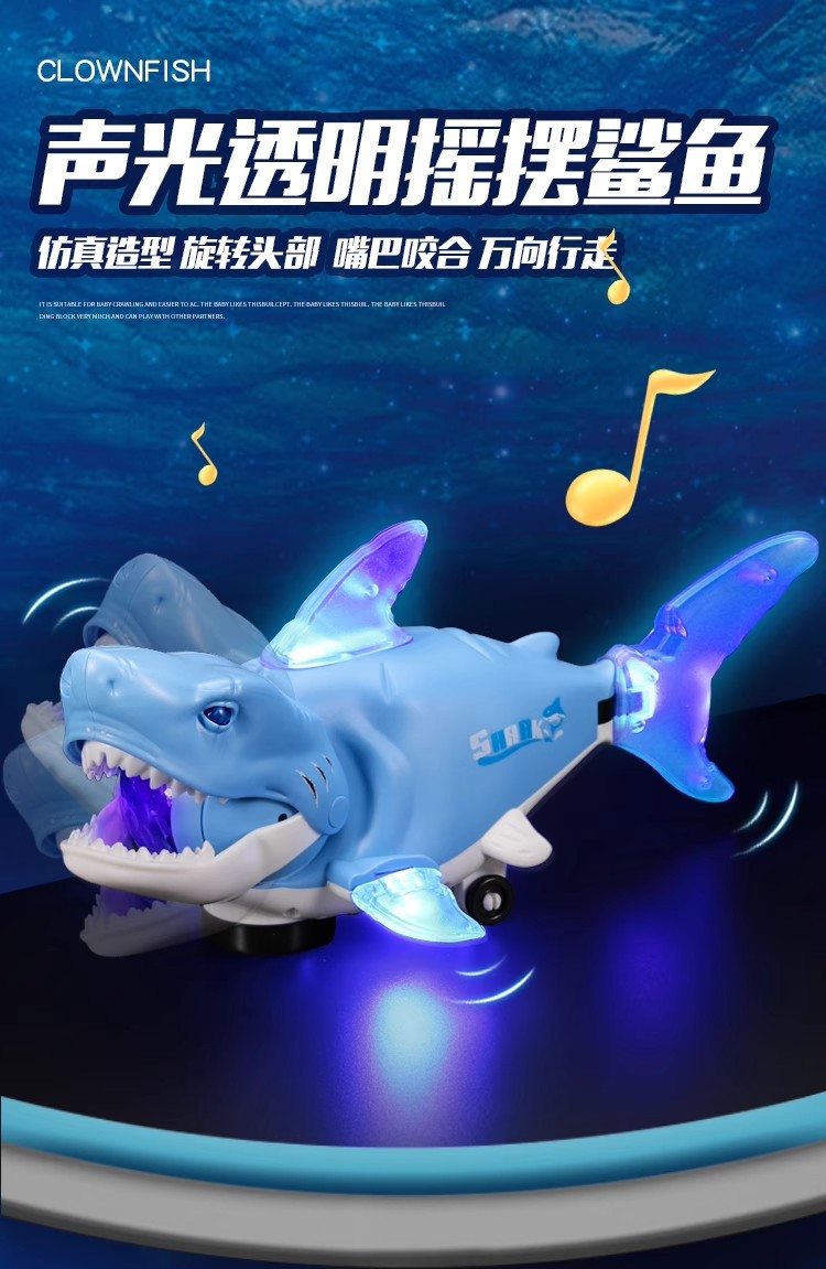 抖音同款儿童电动万向机械鲨鱼灯光音乐男孩仿真模型玩具地摊批发