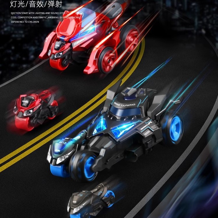 スリーインワン射出車両、プルバックアンドフォワード合金バイク、クールなライトと効果音、ツーインワンの本物の子供用おもちゃのドロップシッピング