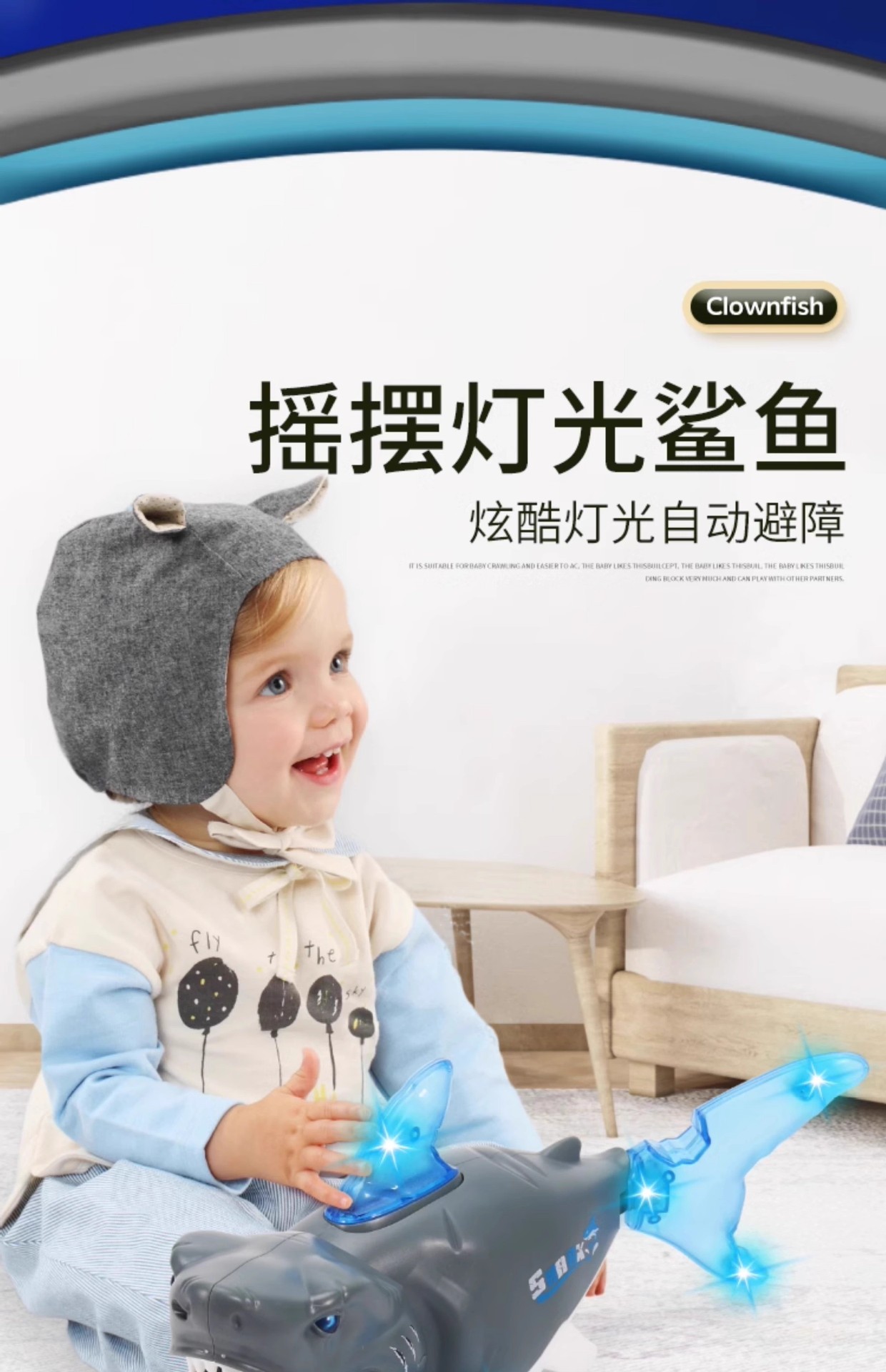 跨境 儿童电动万向机械鲨鱼动感音乐炫酷仿真模型男孩子礼物