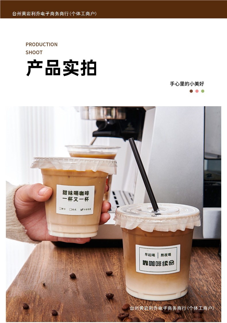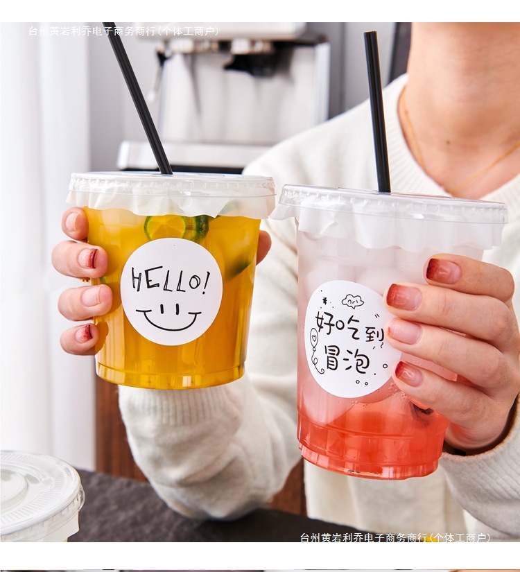 咖啡一次性PET带外卖橙汁盖杯冷饮98口径透明鲜榨奶茶杯商用塑料