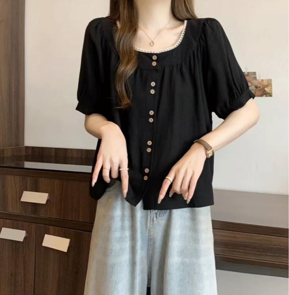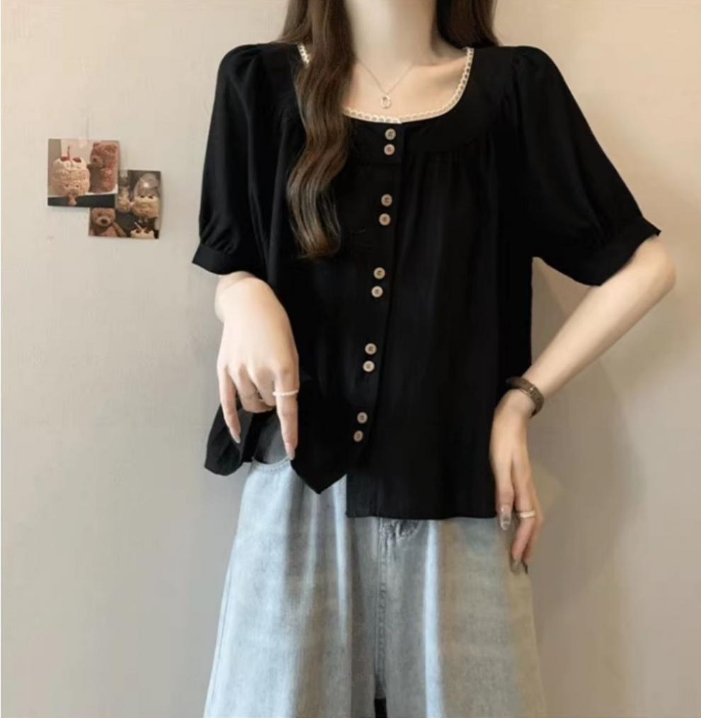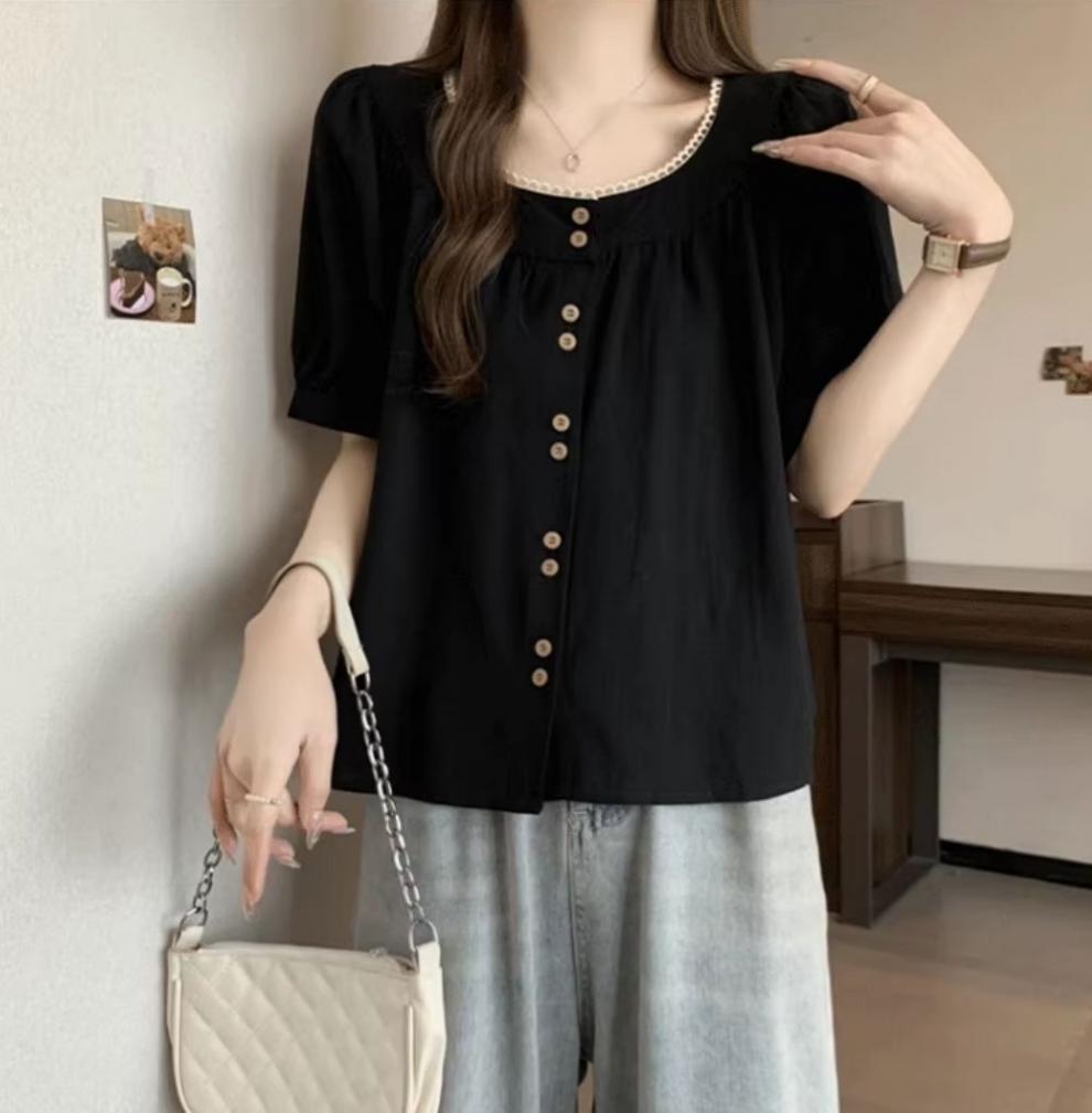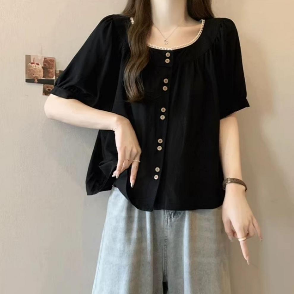 純綿夏プラスサイズの女性の右肩新しい半袖 T シャツ痩身腹ルーズスクエアネックトップ