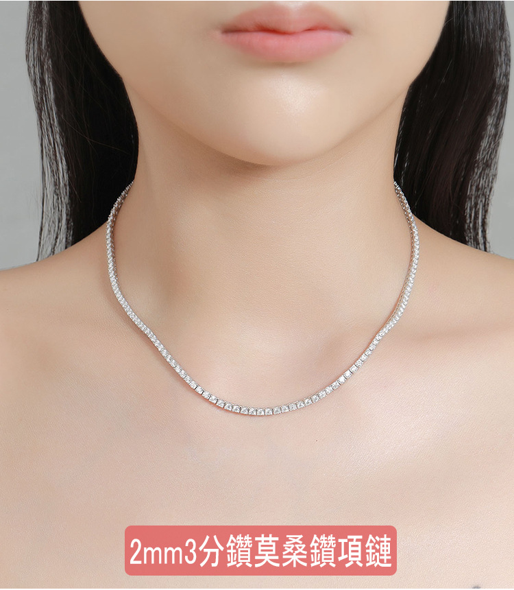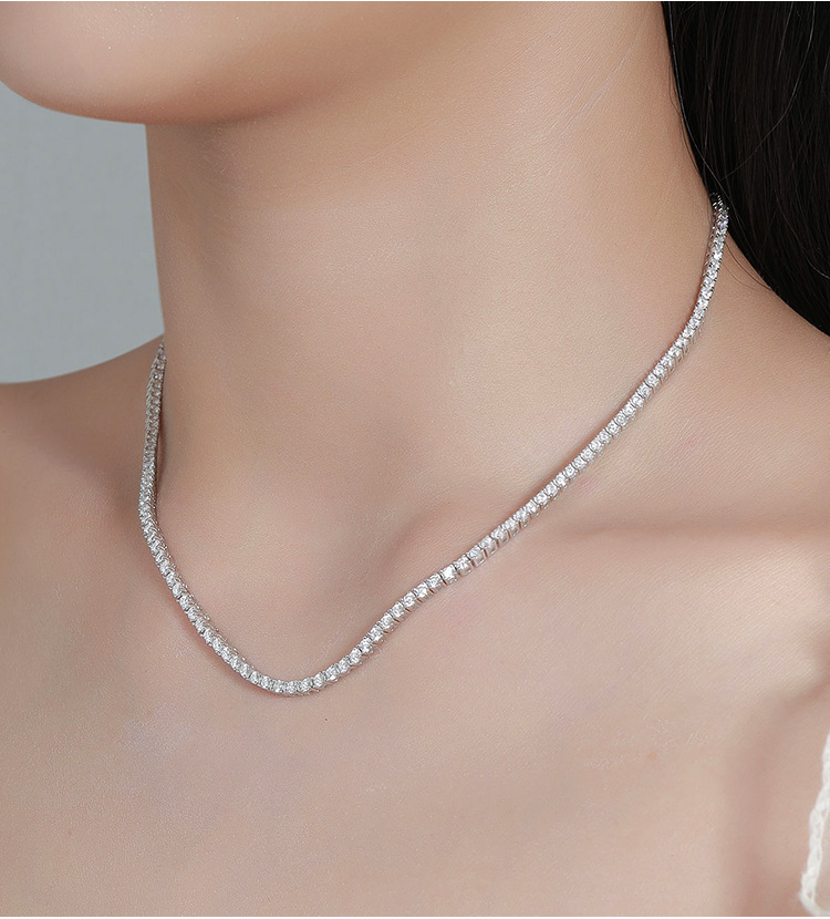 10分莫桑石ネックレス列ドリル四爪純銀シンプル群モザイク