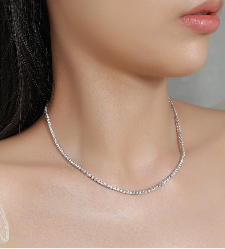 3mm10分泡ドリル莫桑石ネックレス女純銀満ドリルシンプル欧米潮軽豪華項首クロスボーダーアクセサリー