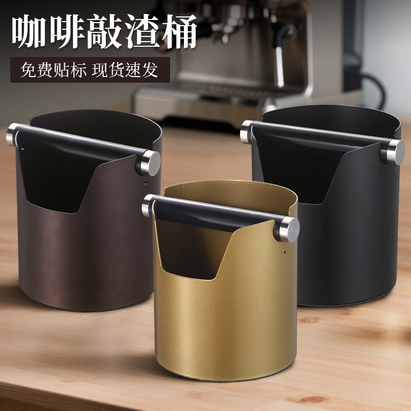 跨境吧台不锈钢咖啡渣桶圆形意式咖啡机器具敲渣桶金色咖啡粉渣盒
