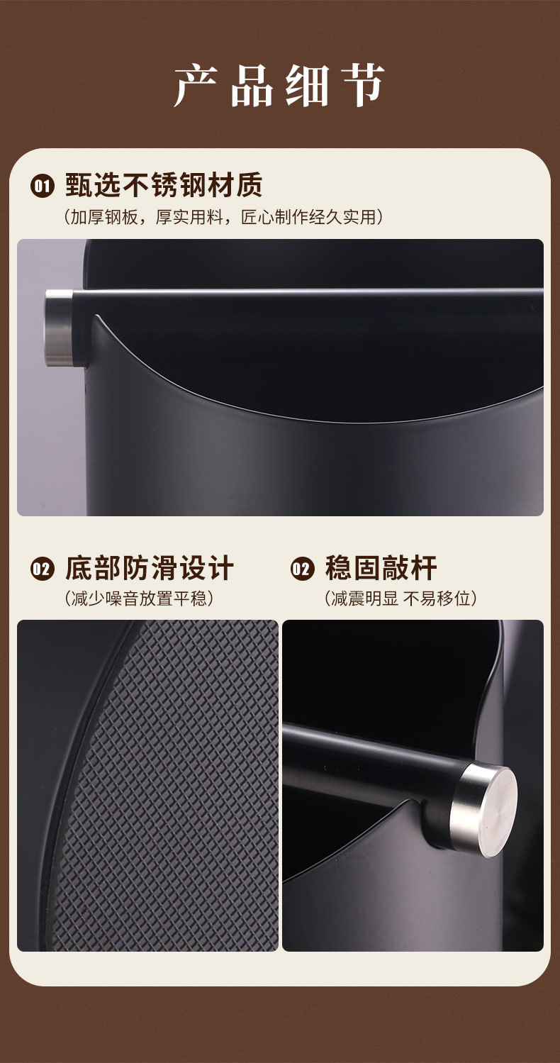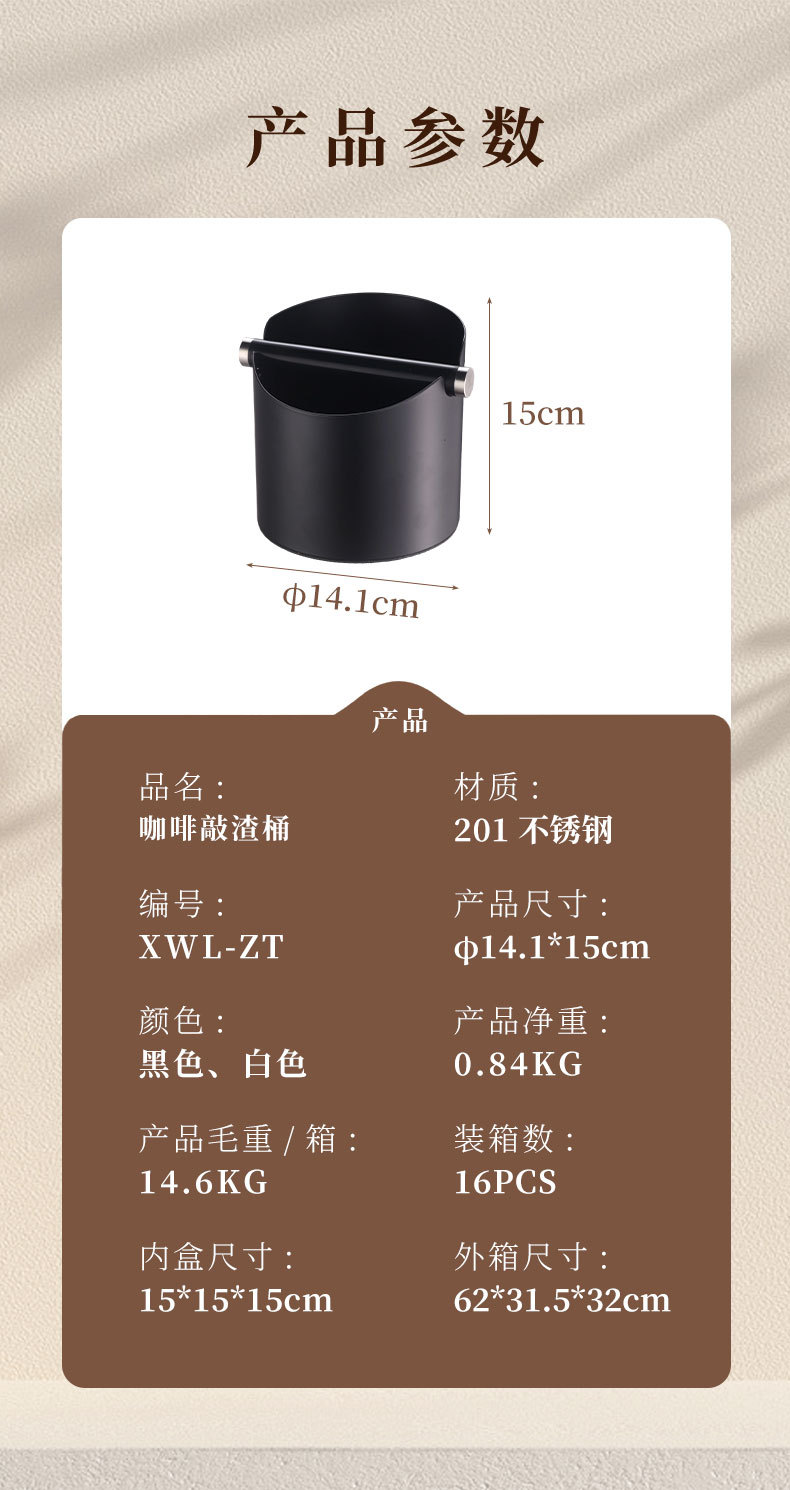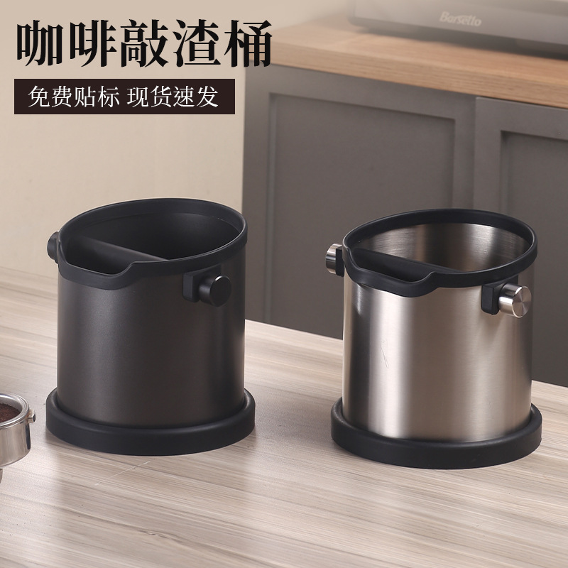 亚马逊简约不锈钢圆形咖啡敲渣桶防滑吧台咖啡机废渣回收桶粉渣桶