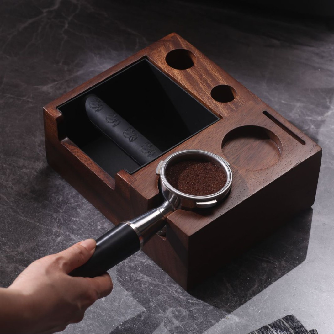 8-in-1多機能ウォールナットコーヒーノックボックス、オールインワンコーヒープレスパウダーホルダー、取り外し可能な廃棄物パウダーボックス