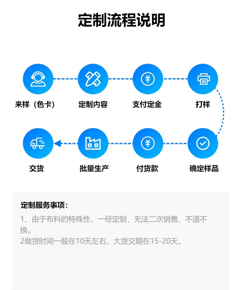 买家可以先联系客服,先寄色卡确认后再下单剪版大货。