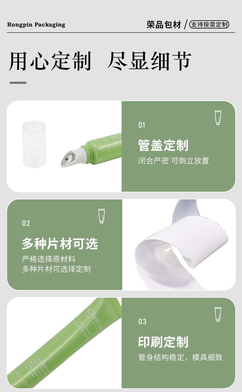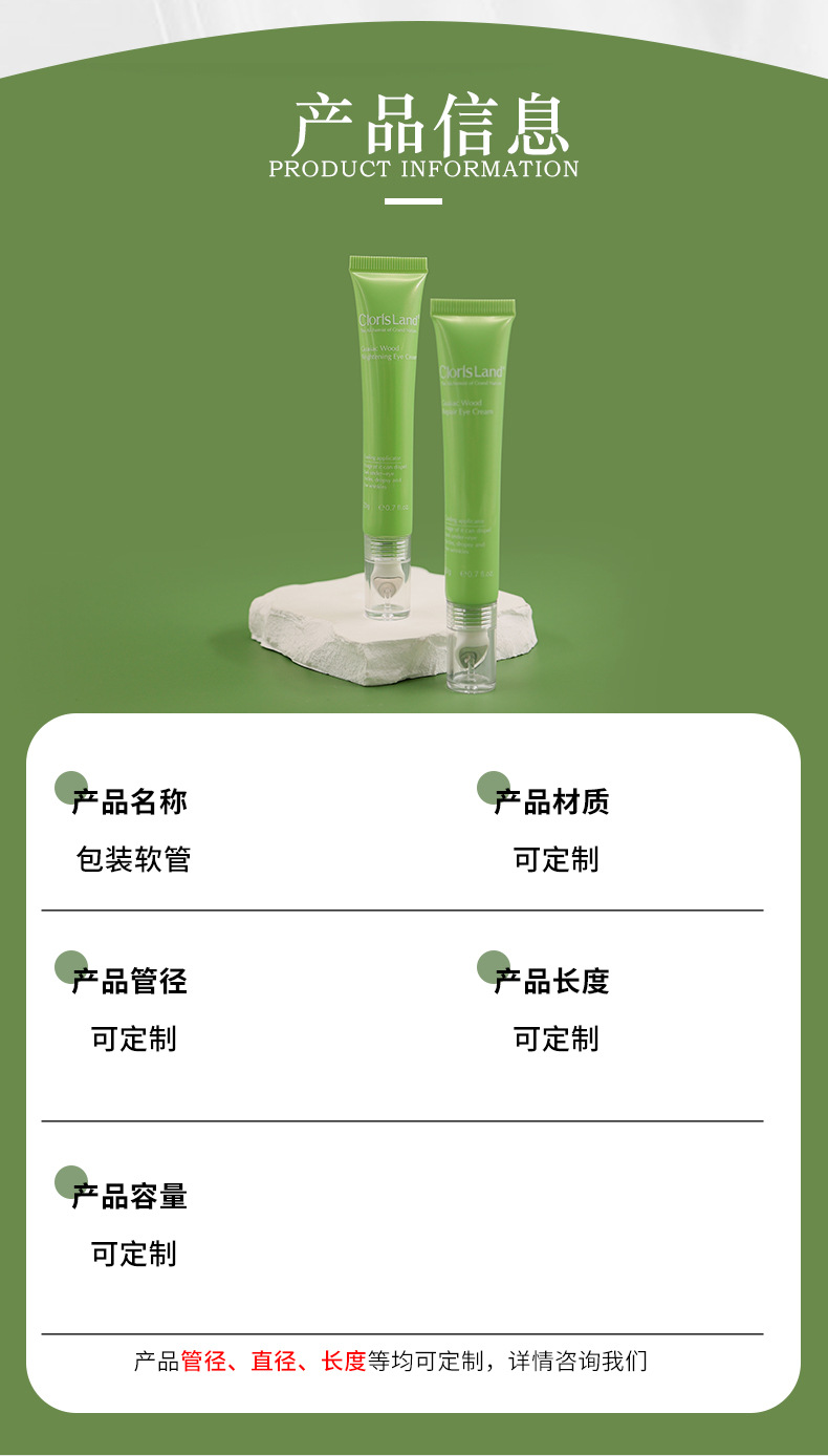 【加工】亜鉛合金ヘッド付き5層PEチューブ5-25gアイクリームリップクリーム包装材ホースクリスタルチューブキャップ