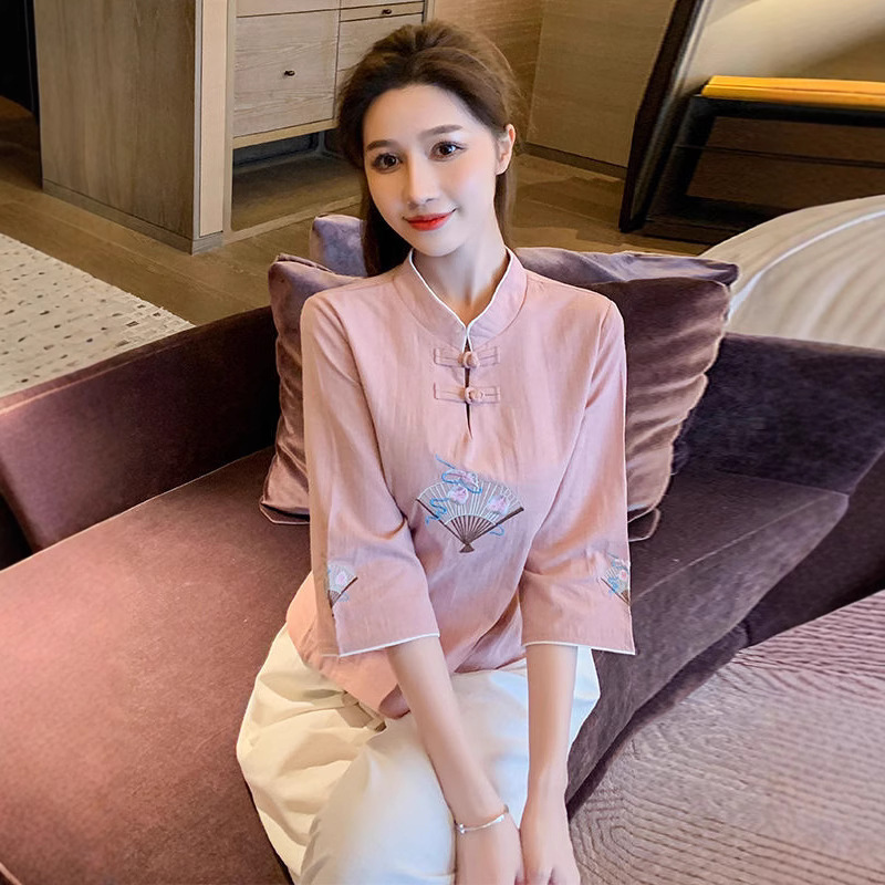 シングル/ツーピースセット 2024 秋の新古代スタイル中国風漢服改良された庶民服古代茶服禅服女性用