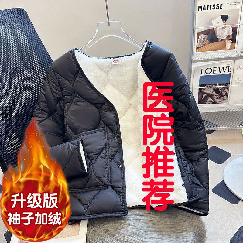 女性用インナーコットンコート、女性用冬用ベルベット厚手医療用インナーウェア、小型中綿ジャケット、ボトムス、暖かいダウンコットンコート