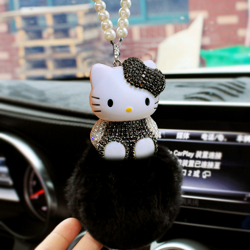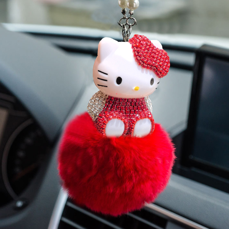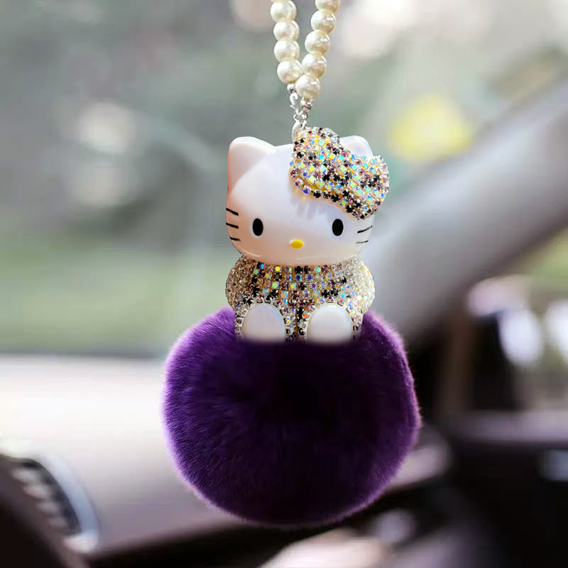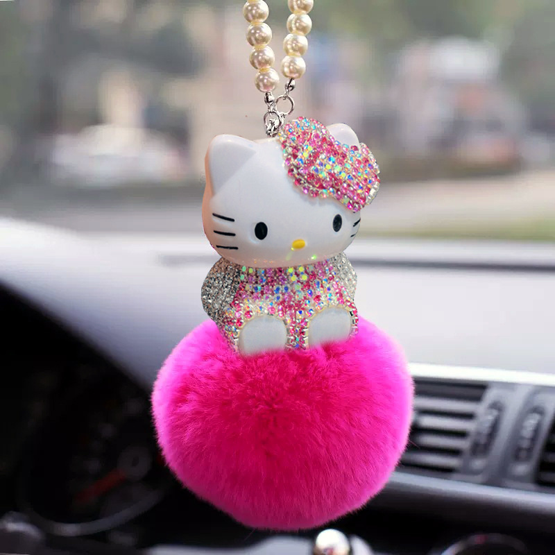 ケイティカーペンダントファーボール猫ダイヤモンドKTペンダント車のインテリアペンダントインテリア用品車のインターネット有名人DIY