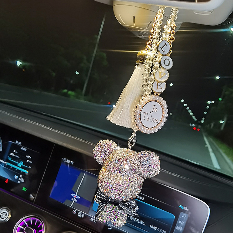 自動車のストラップの車内用ペンダントの高級創意ネットの赤いダイヤモンドの熊の車のバックミラーの装飾品の女神の金