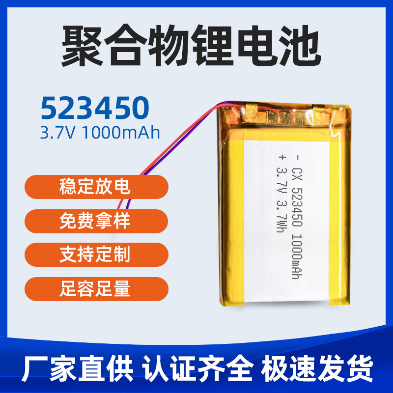 メーカー推奨523450-1000mah耐高温リチウム電池bluetoothヘッドフォンカメラリチウム電池