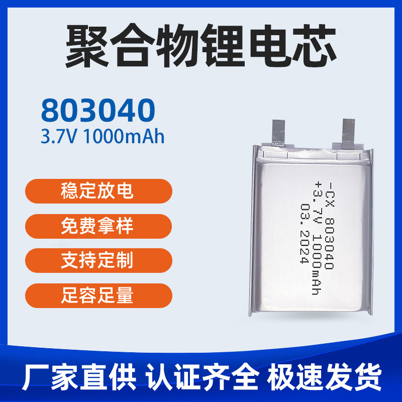 ポリマーリチウム電芯803040-1000mah電芯3.7vスマートbluetooth音響美容器リチウム電池