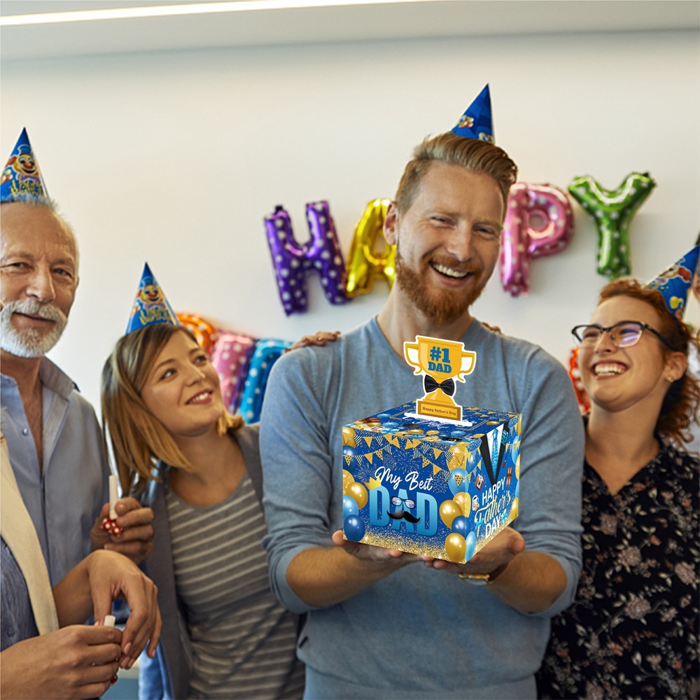 产品用途:父亲节派对装饰用品,爸爸生日派对气氛装饰道具,父亲节装饰惊喜盒子。