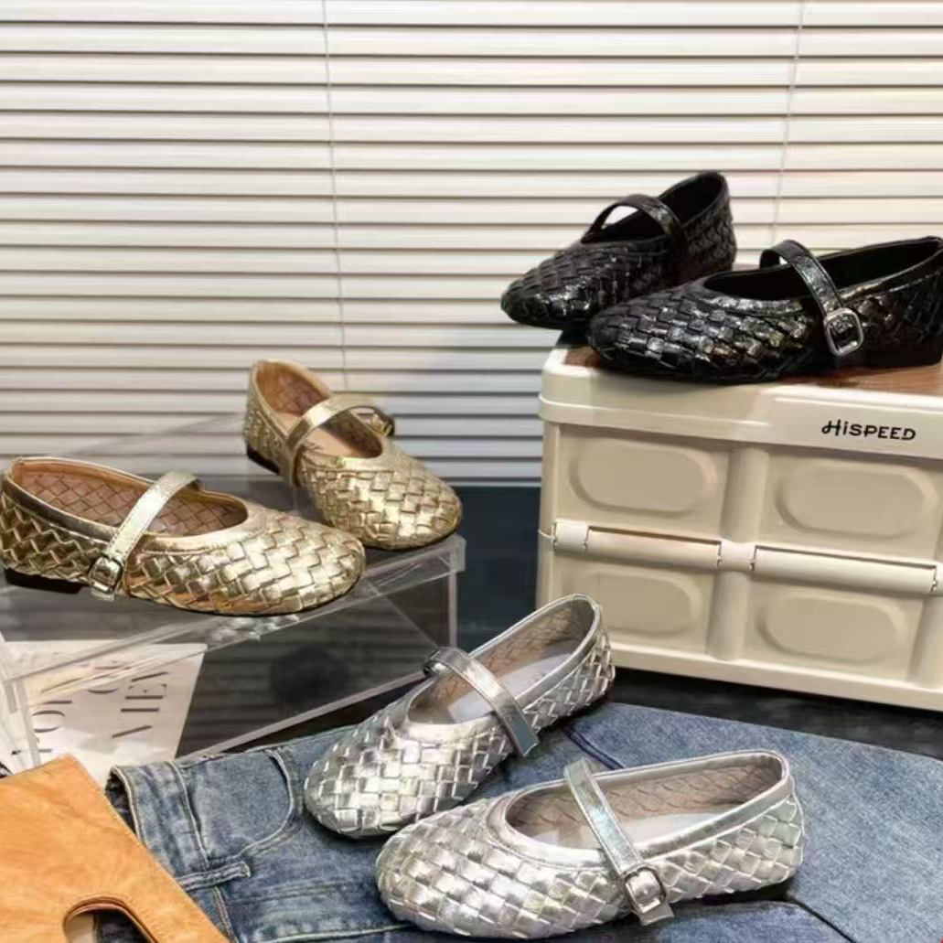 欧米のRowの透かし彫りのフランス式の編み縄のネットの面の爆発のファッションの百合の丸い頭の平底の女性はローマの冷たい靴の表面を引きずります。