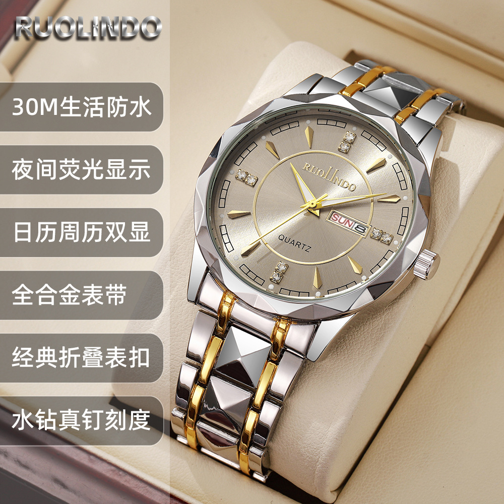 机 芯:日历+周历石英机芯,使用377纽扣电池,原装电池可以使用4-6个月左右
