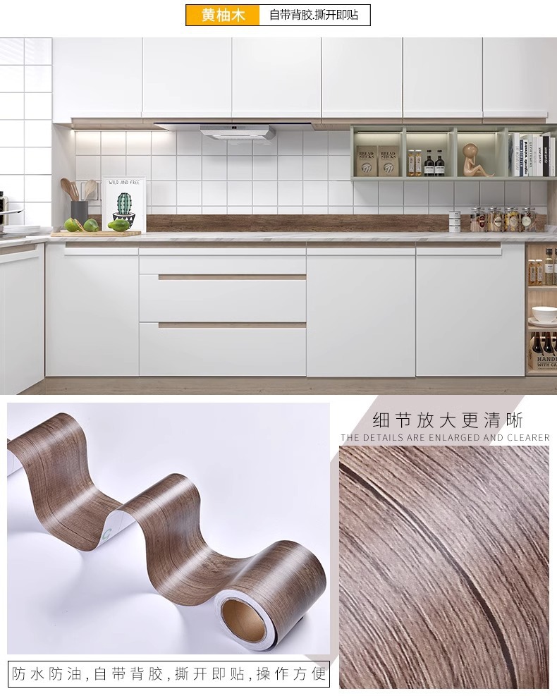 10米自粘踢脚线墙贴防水防潮卫生间地线木纹贴纸窗厨房灶台腰线贴