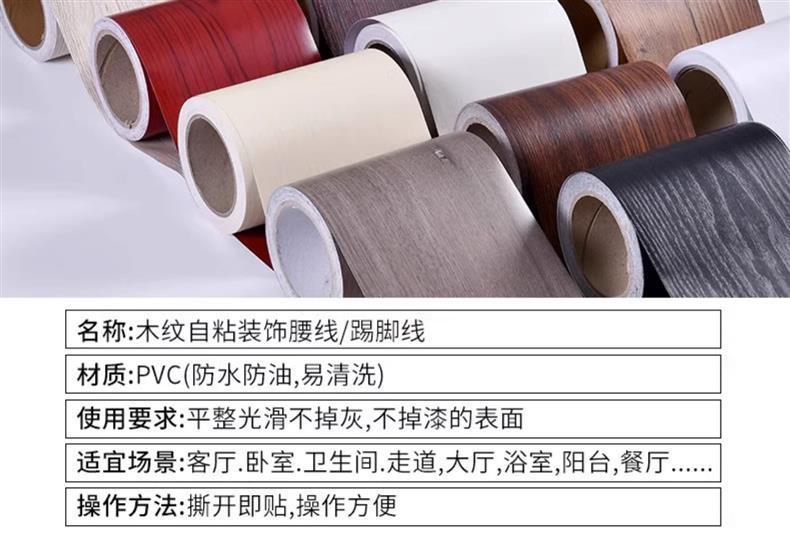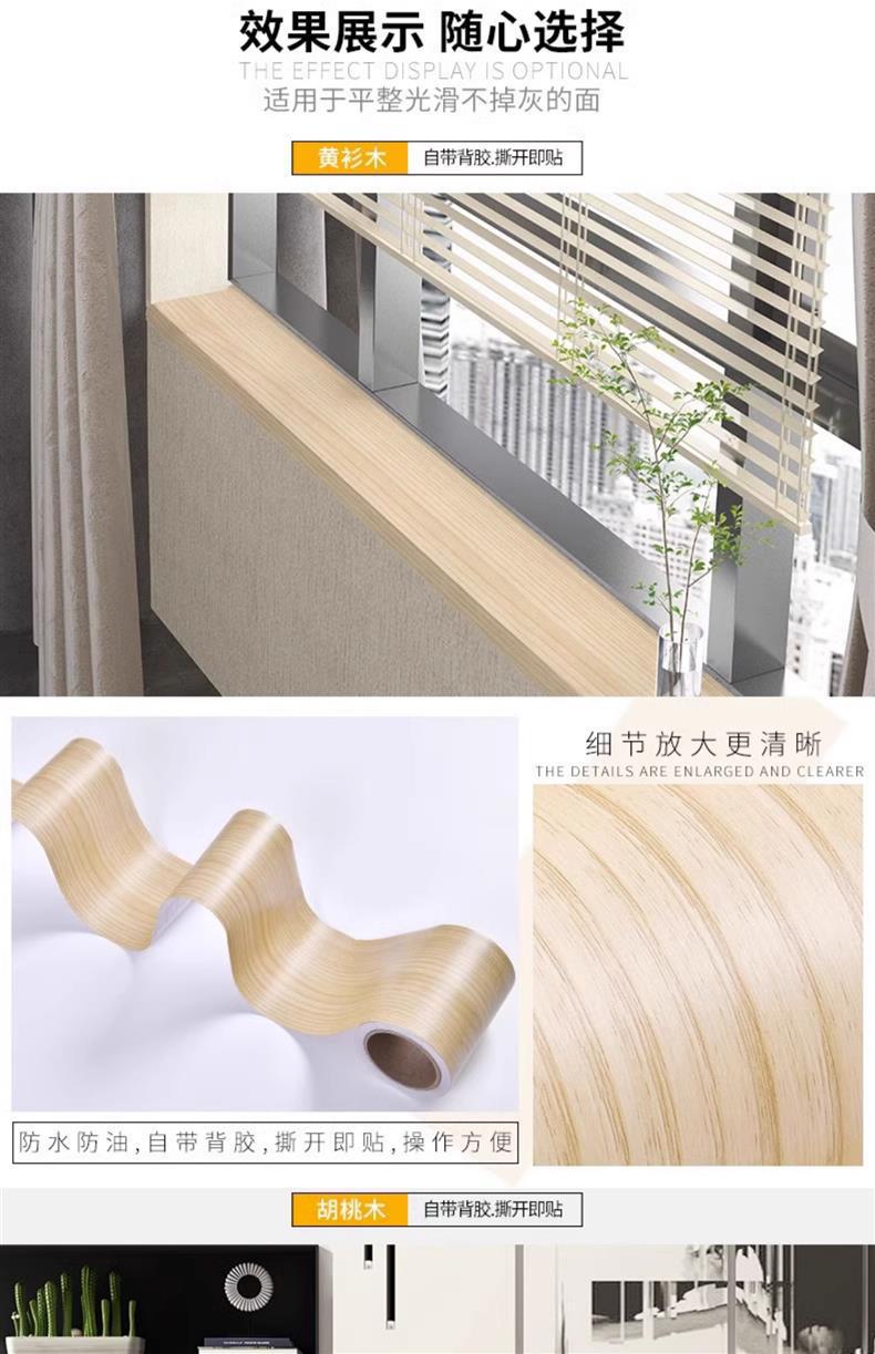 跨境木纹踢脚线贴纸自粘10米长木门框包边贴修复遮丑翻新装饰贴纸