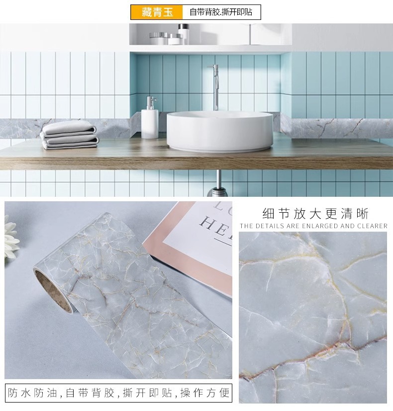 卸売大理石タイルウォールステッカーリビングルームの壁の装飾壁紙キッチンバスルーム防水防湿自己粘着紙