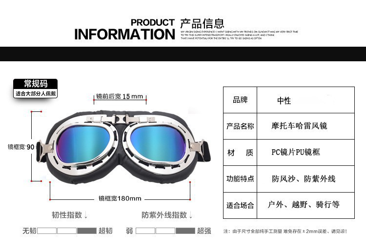 哈雷眼镜护目镜风镜面罩配件防风镜防紫外线卡丁银框运动摩托车镜
