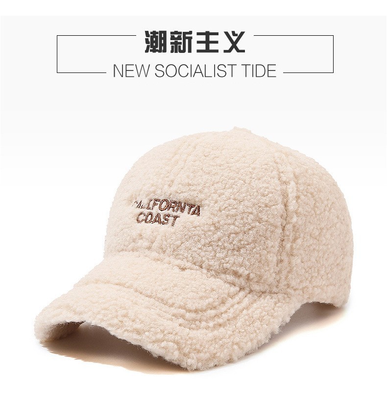 羊羔秋冬季加厚帽子保暖冬季百搭鸭舌帽毛绒韩版时尚冬天棒球帽子