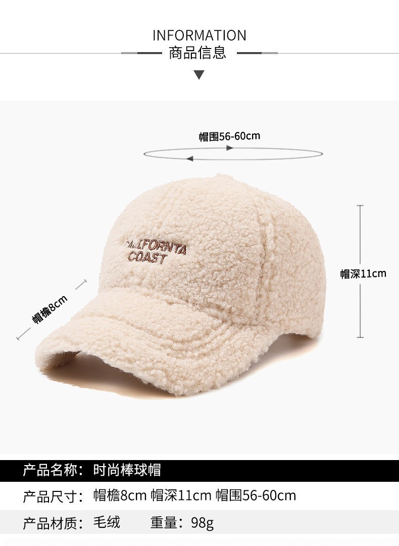 冬季棒球帽女新款韩版百搭显脸小毛绒鸭舌帽学生防寒加厚保暖帽子