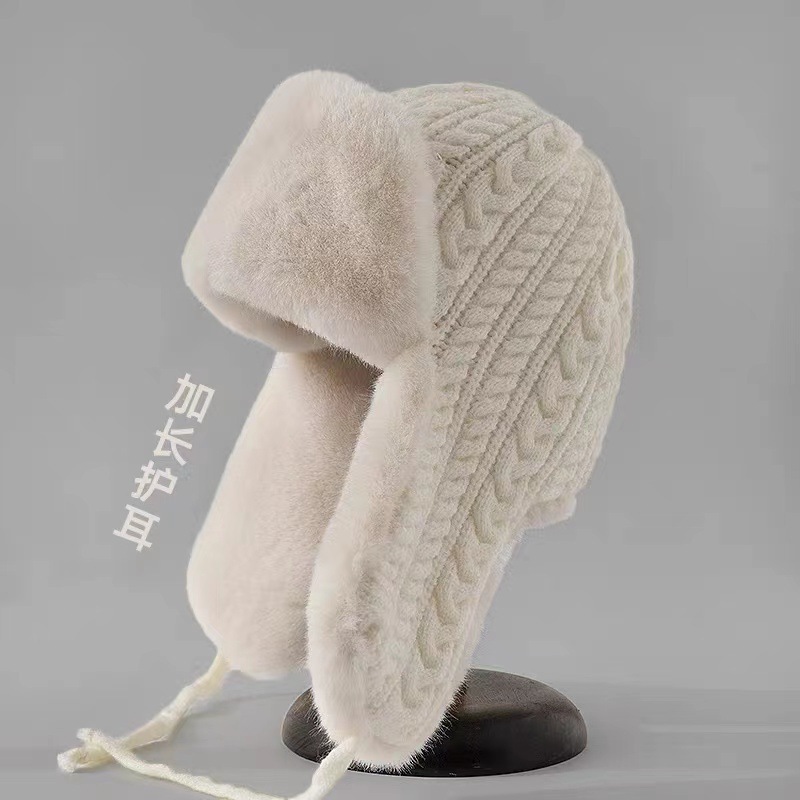 韩版冬天加绒加厚毛线帽子女可爱针织帽护耳滑雪帽骑车保暖雷锋帽