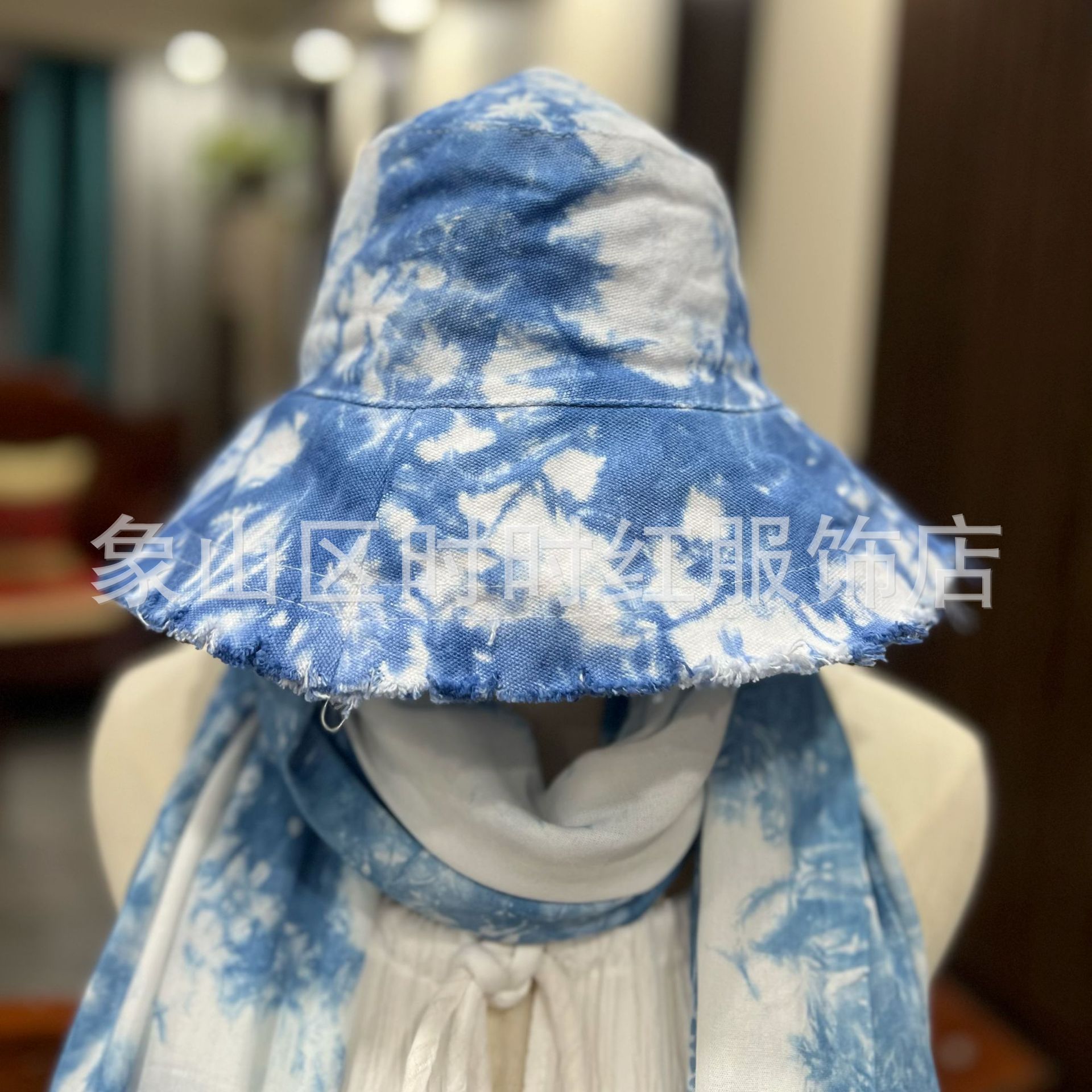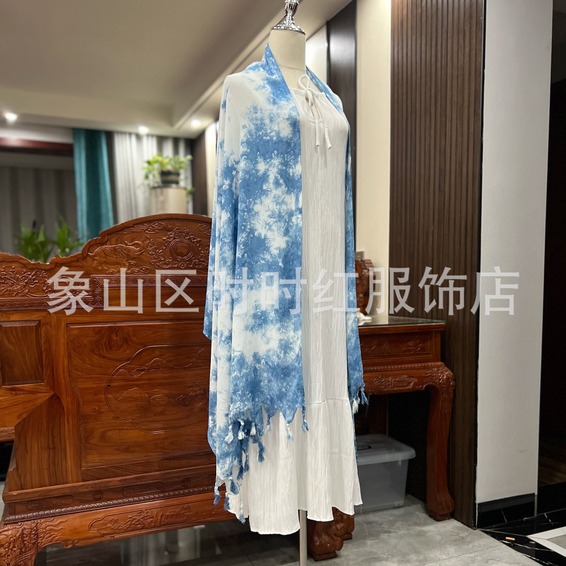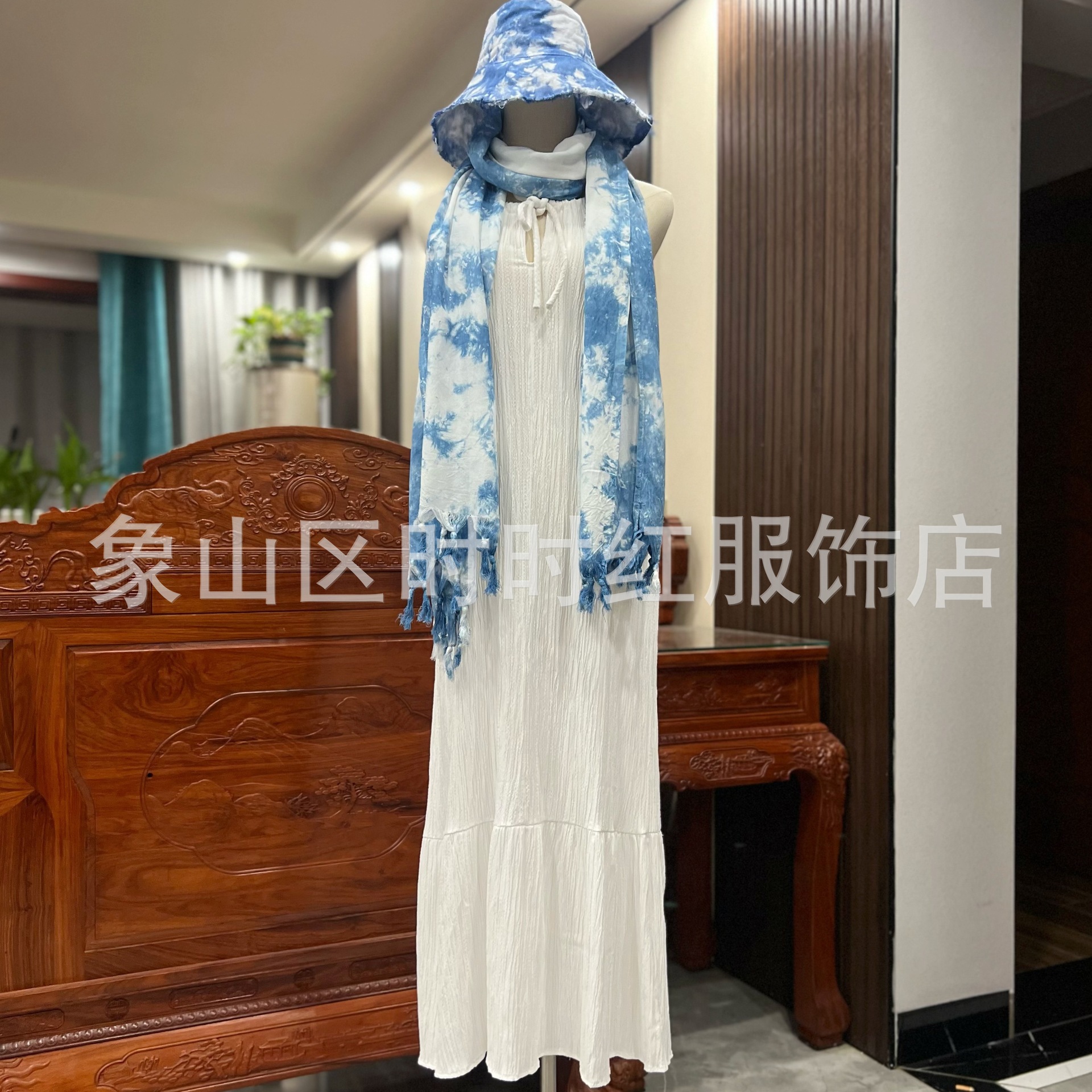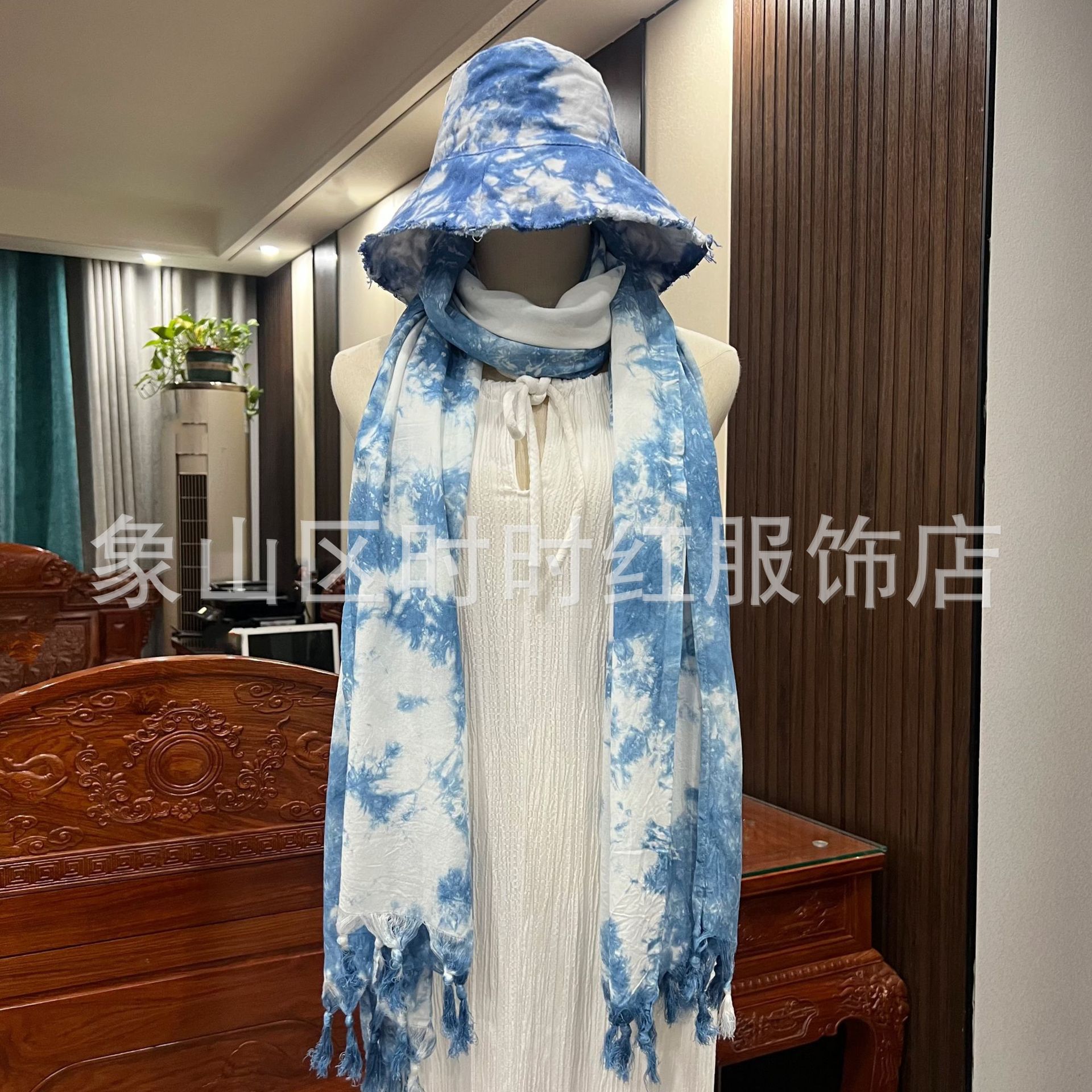 雲南貴州大理絞り染め藍草染め絞り染めタッセルロングスカーフ大ショール古代絞り染めラウンド帽子
