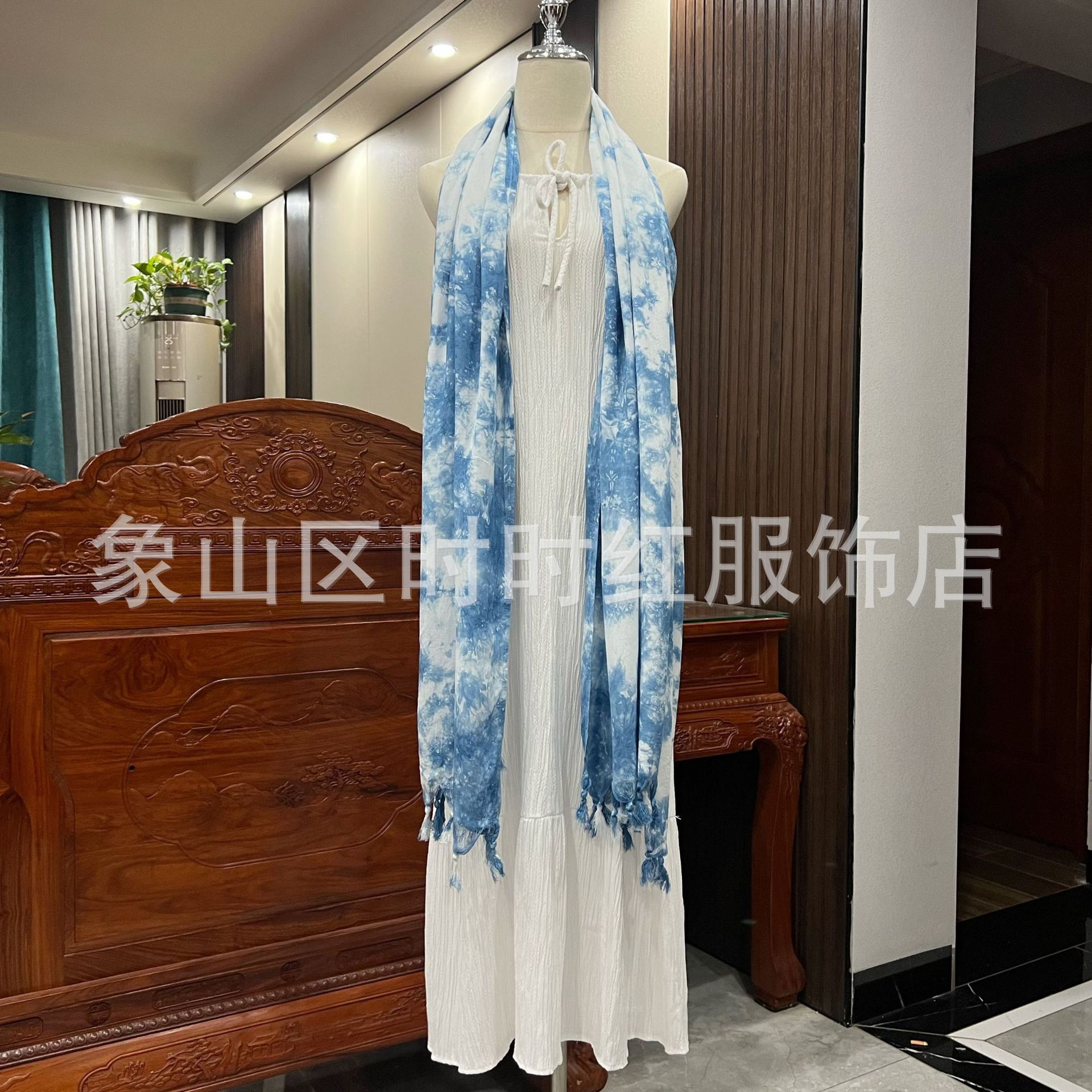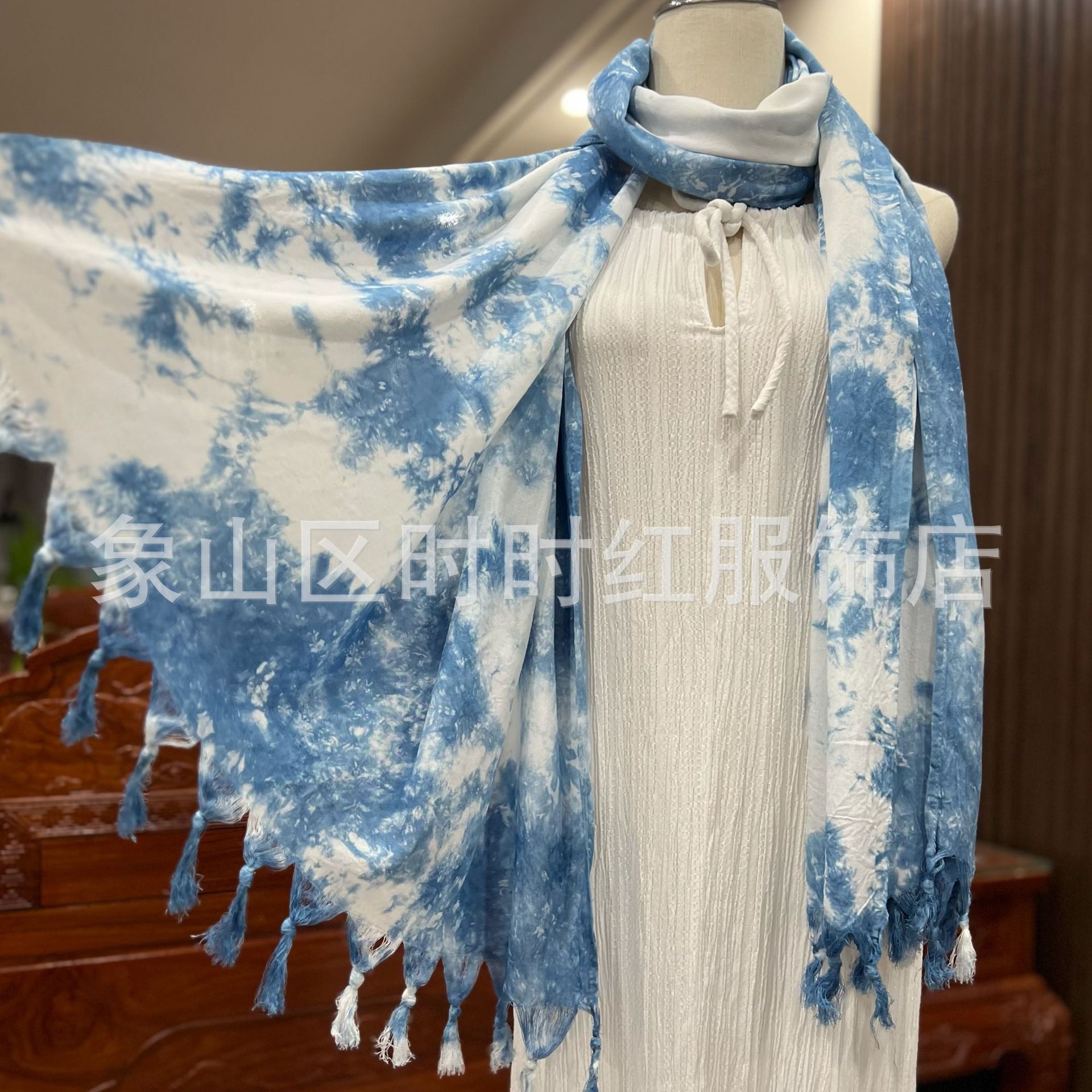 大理蝋染工芸綿マフラー女性民族風軟儒藍染流蘇雲南麗江観光大ストール日焼け止め