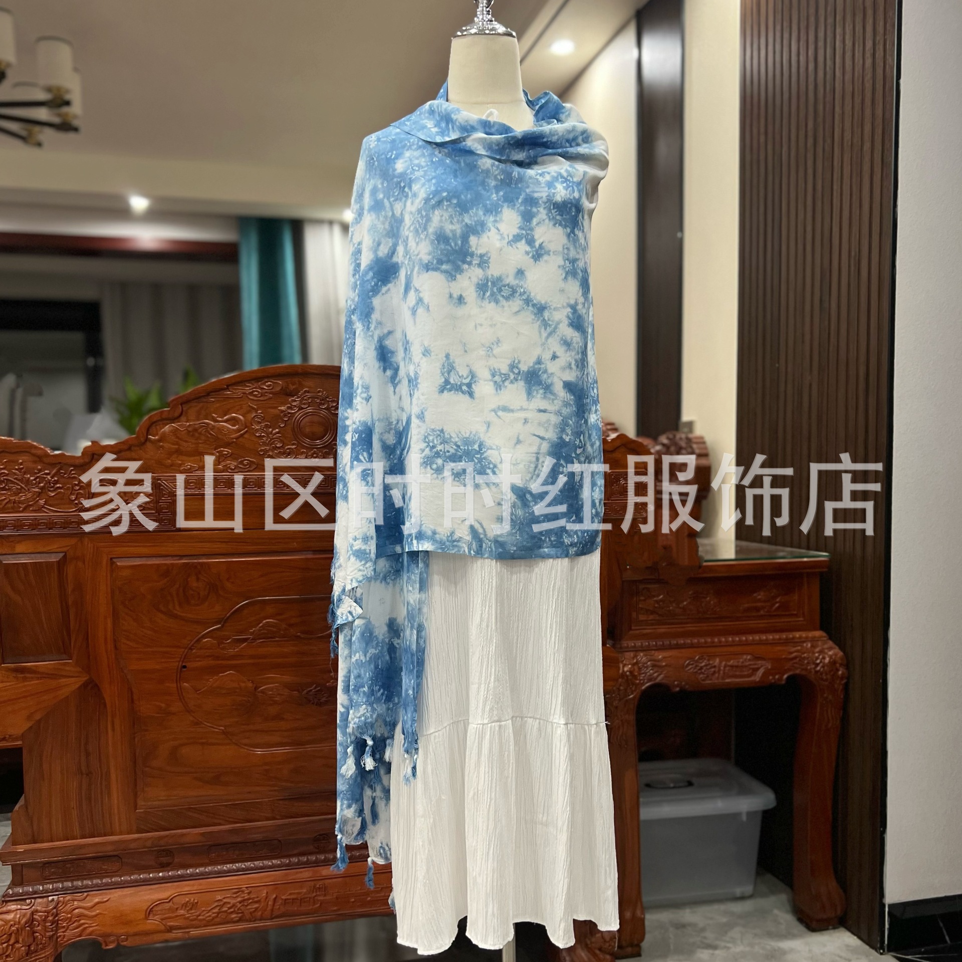 大理絞り染めスカーフ 2025 新雲南エスニックスタイル綿とリネン青染め絞り染めレトロ文学スカーフショール