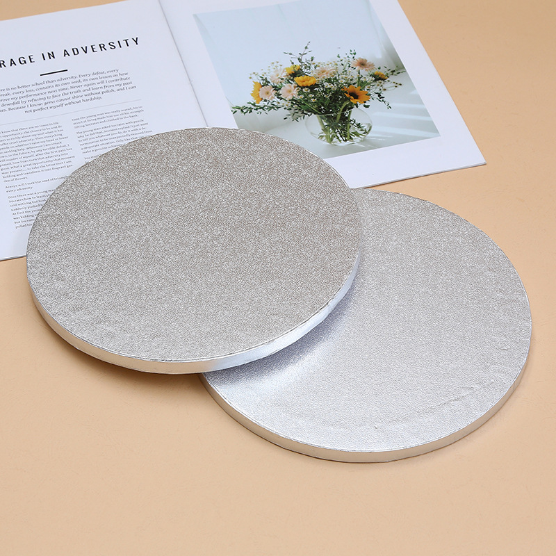 跨境批发圆形蛋糕底托创意防油覆膜硬纸托银色瓦楞生日蛋糕纸垫片