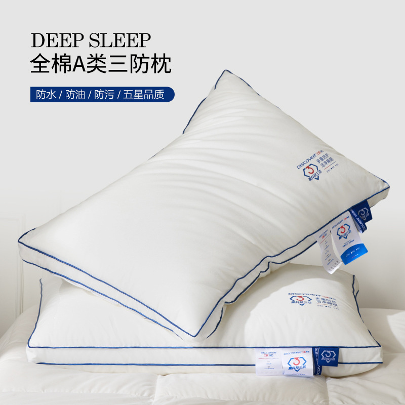A类全棉三防羽丝绒枕芯 抗菌睡眠枕头单人家用护颈椎宾馆酒店枕芯
