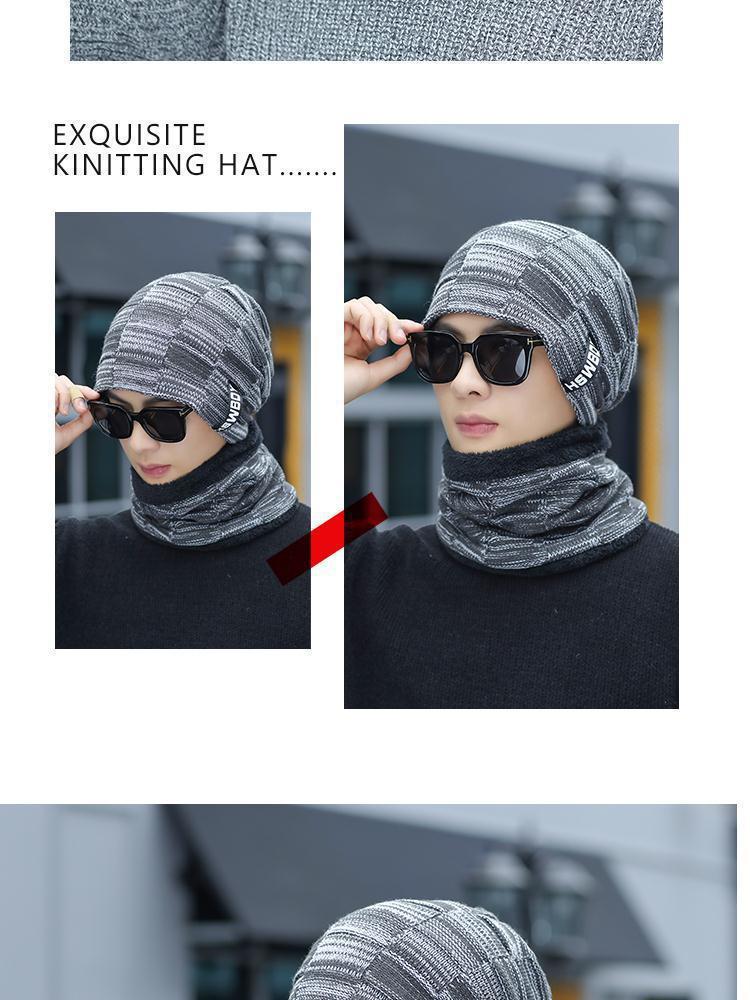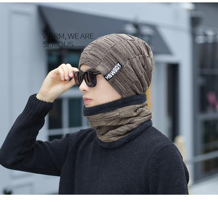 冬のスカーフ付き帽子、ベルベットの暖かいニット帽、屋外防寒ウール帽子、カップルプルオーバー帽子卸売