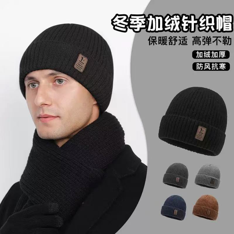 帽子 メンズ 冬用 保温 厚手 裏起毛 韓国風 若者向け サイクリング ニット帽 学生用 プルオーバー クロスボーダー卸売