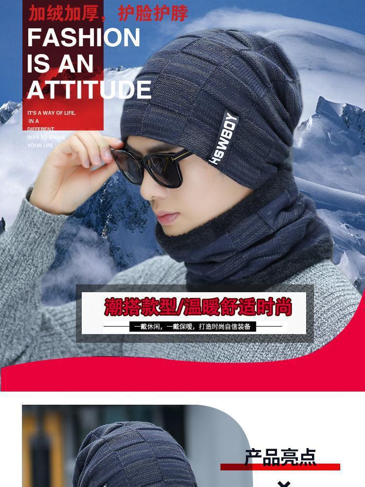 毛糸帽子男冬青年保温厚手ニット毛糸帽子韓版潮加毛冬綿帽子防寒ジャケット