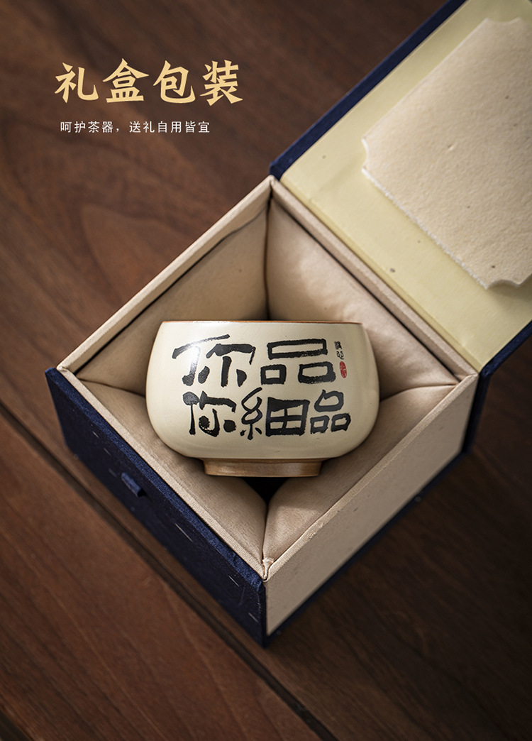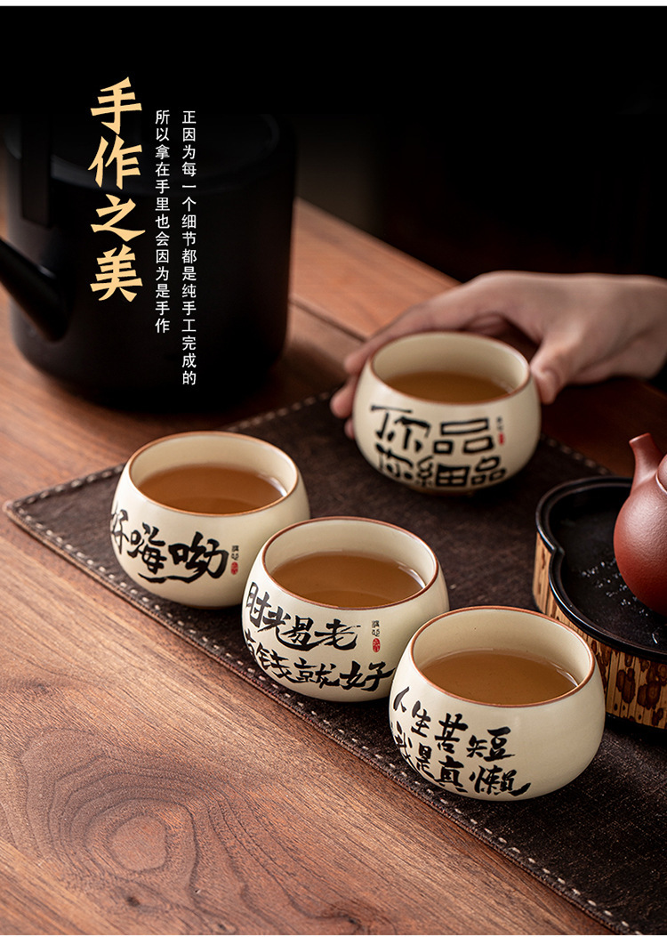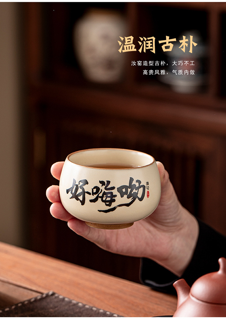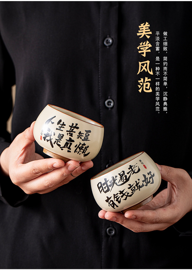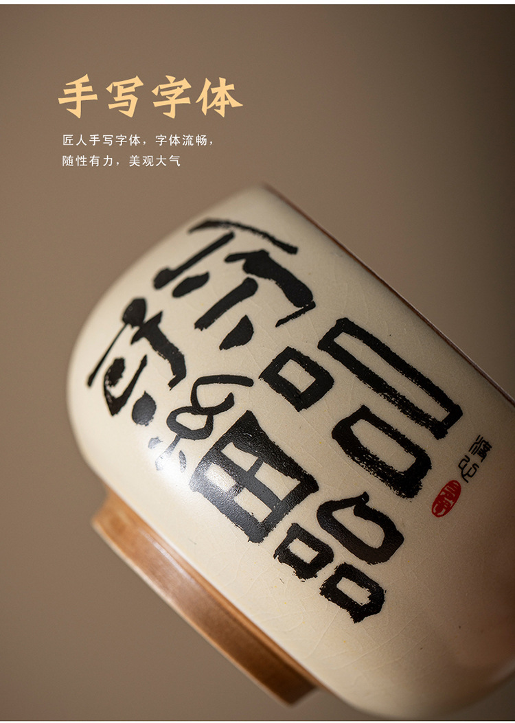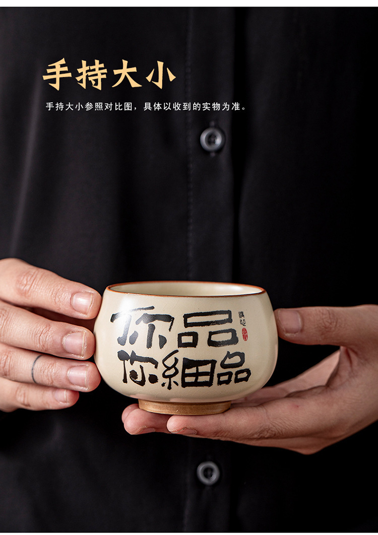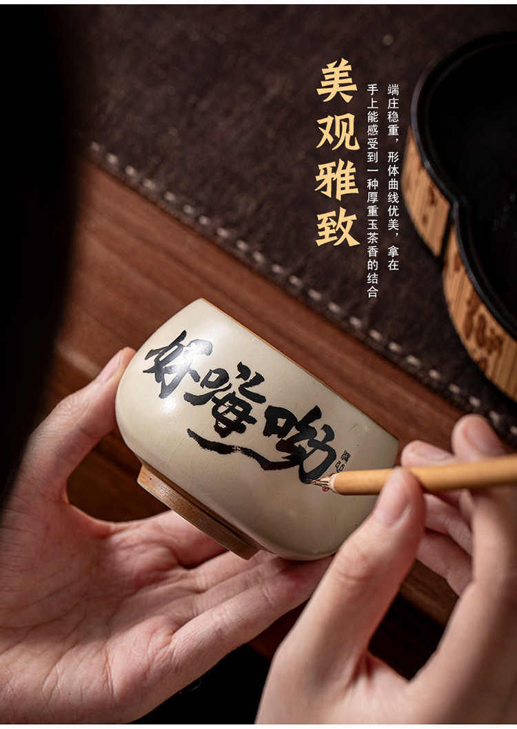 ベージュ汝窯セラミック書道ティーカップホームクリエイティブパーソナルマスターカップ手書きティーカップセラミックシングルカップ