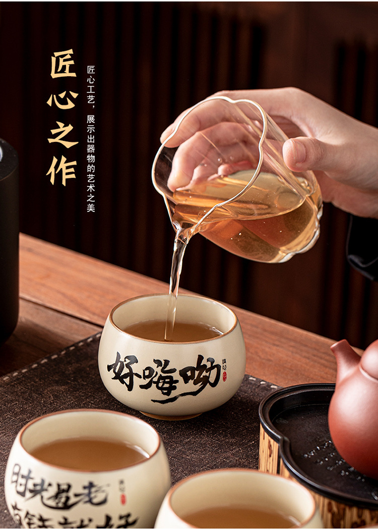 陶磁器汝窯茶杯家庭用個人主人杯茶具品茗杯企業活動開門紅礼品小セット
