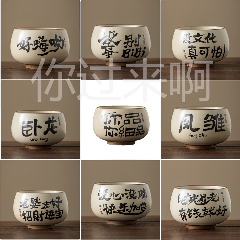 汝窯臥龍鳳凰マスターカップ個人専用草灰手書きカンフーティーカップペアカスタムティーカップ