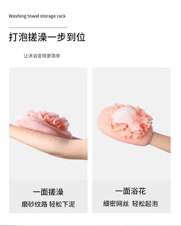 搓澡巾浴花二合一女士伤皮肤用澡巾搓背家用沐浴手套洗澡神器