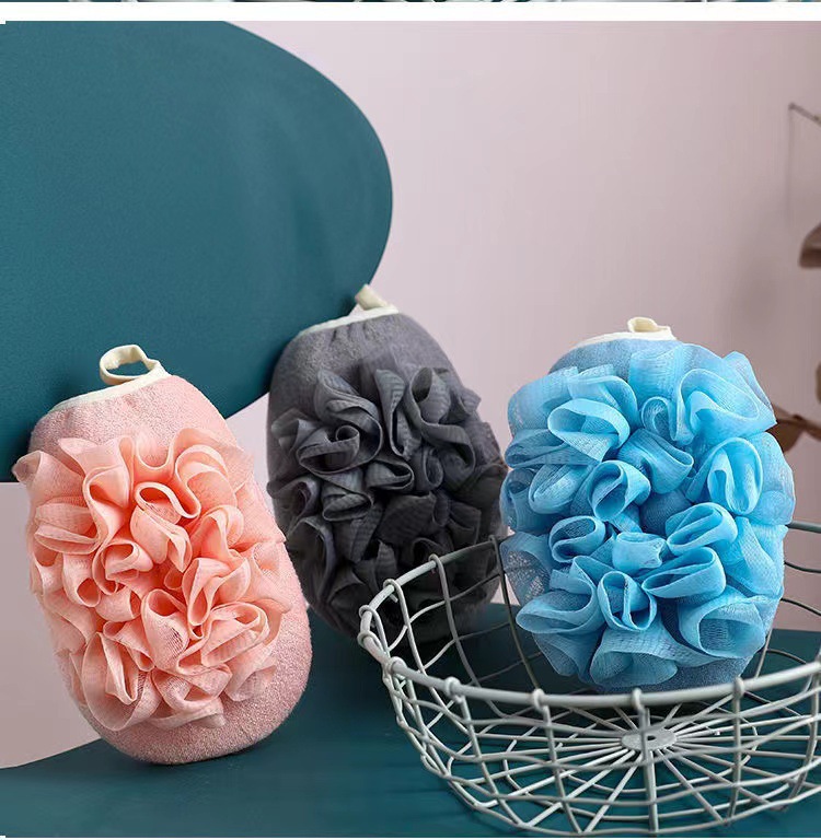 Xingteng バスタオル 両面ツーインワン背中こすり入浴用品 入浴発泡バスフラワー 両面バスタオル手袋