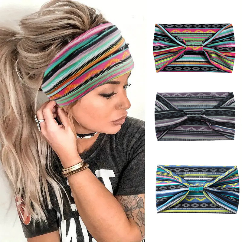 ボヘミアンヘアバンドファッションレディースプリントヘッドバンドスポーツヨガヘアバンドワイド縁結びヘッドスカーフ髪飾り