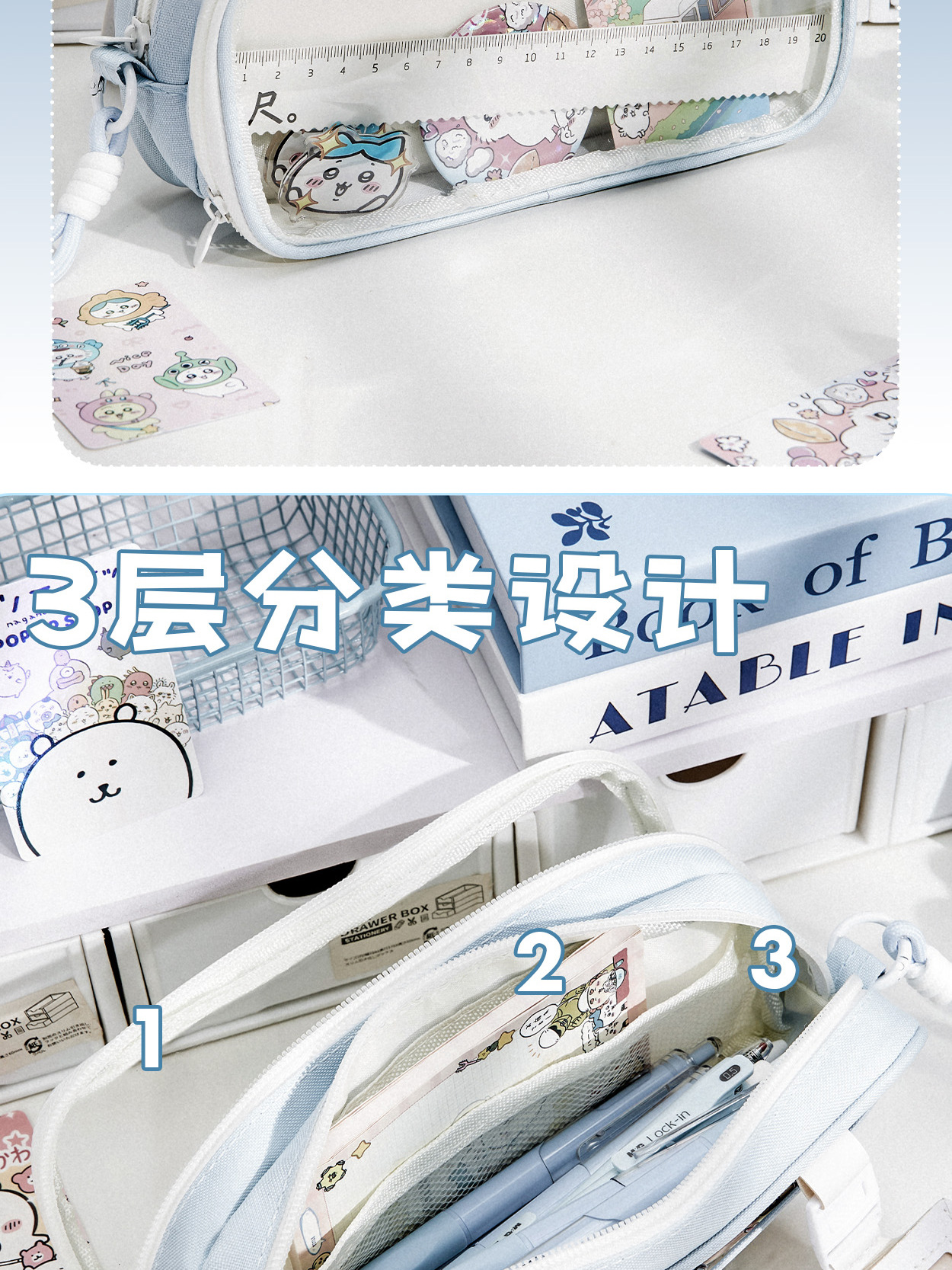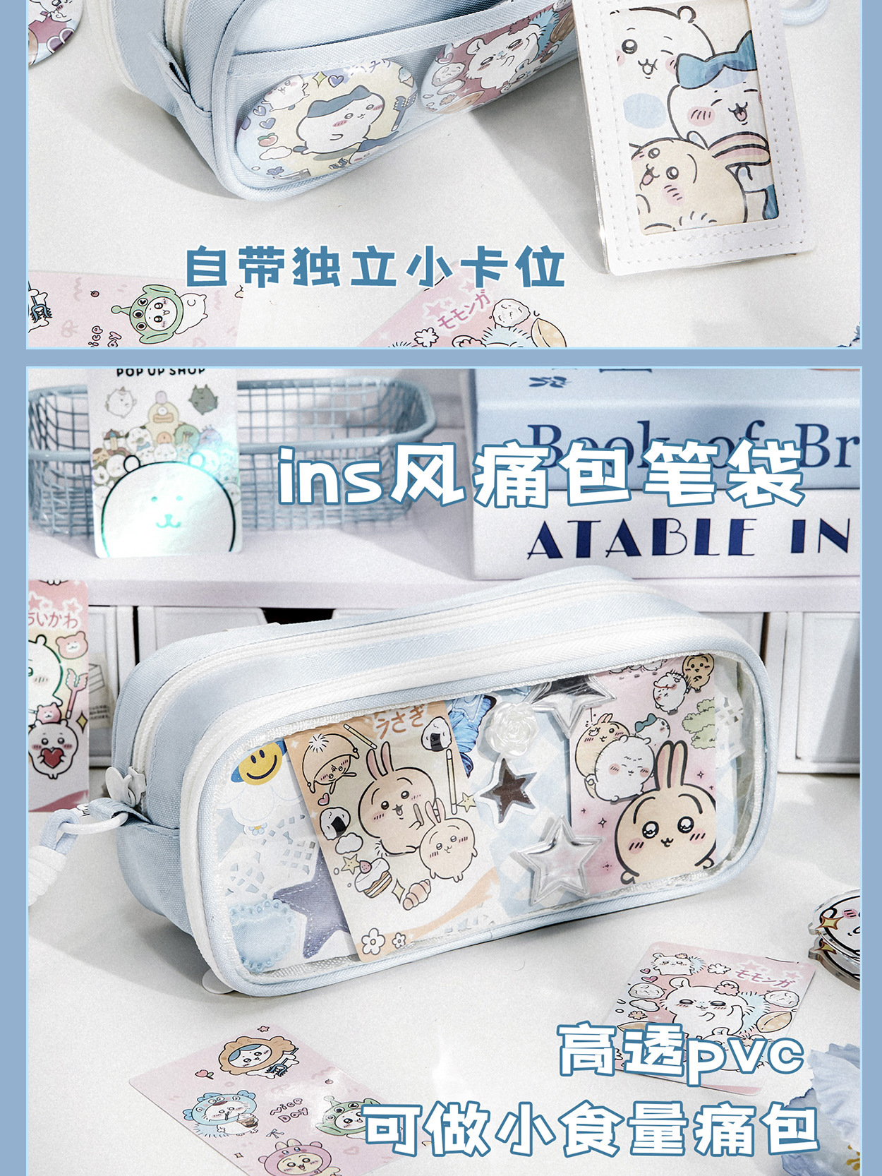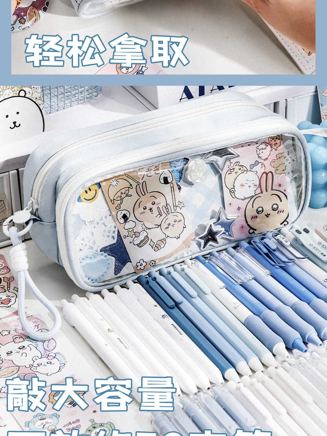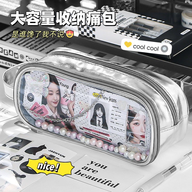 透明笔袋大容量初中透明女孩文具盒可视窗口多功能吧唧痛包文具袋